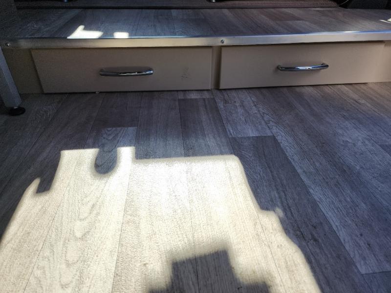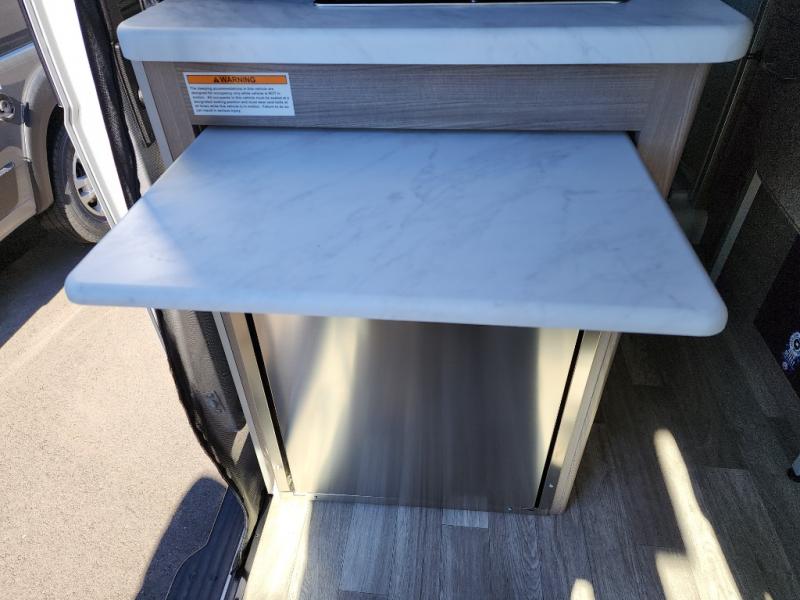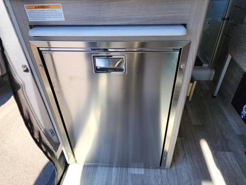 Cook with ease in the galley kitchen, complete with a stainless steel sink, 2-burner gas cooktop, microwave oven, and a refrigerator to keep your food fresh. Whether it’s a quick breakfast before hitting the trail or a hearty dinner after a day of adventure, you have everything you need to eat well on the road.