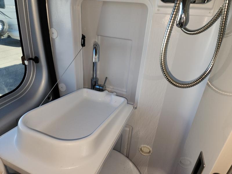 Step inside and be amazed by the smart layout. The 18M floorplan offers a cozy rear wet bath, a functional kitchen, and a comfortable living/sleeping area with a convertible sofa bed. Clever storage solutions keep your gear organized, while large windows bring in natural light and scenic views.