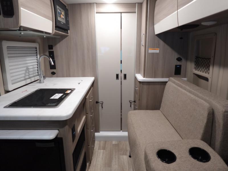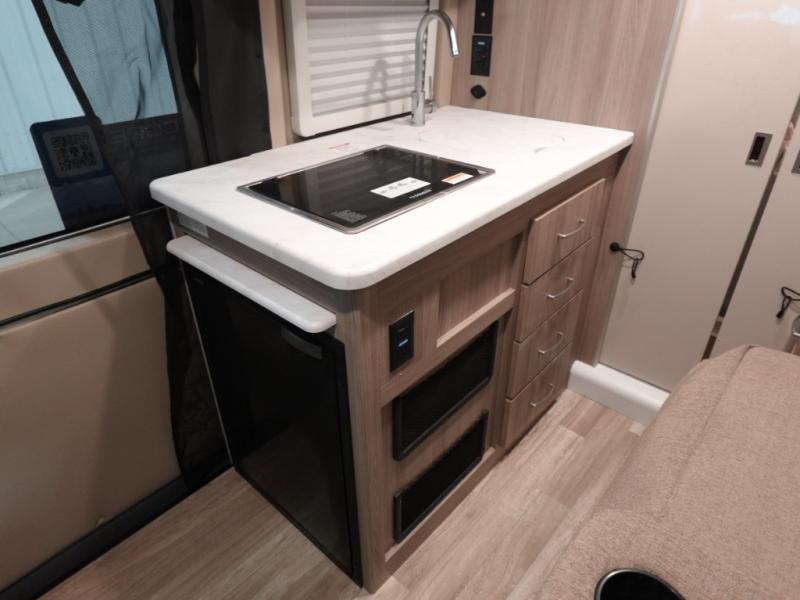 You can go wherever your heart desires with this motorhome! The rear wet bath adds comfort and convenience, plus there is storage to keep your towels close. You can prepare home cooked meals while at the campsite or cook some burgers for a tailgate with the portable cooktop while enjoying a cold beverage kept in the single door 12V electric refrigerator. The swivel captain's chairs are not only comfortable for driving, but also for socializing with guests. The 72" x 47" pull out bed has a removable table and is across from the electronics cabinet which has a HDMI cable and USB charging port.