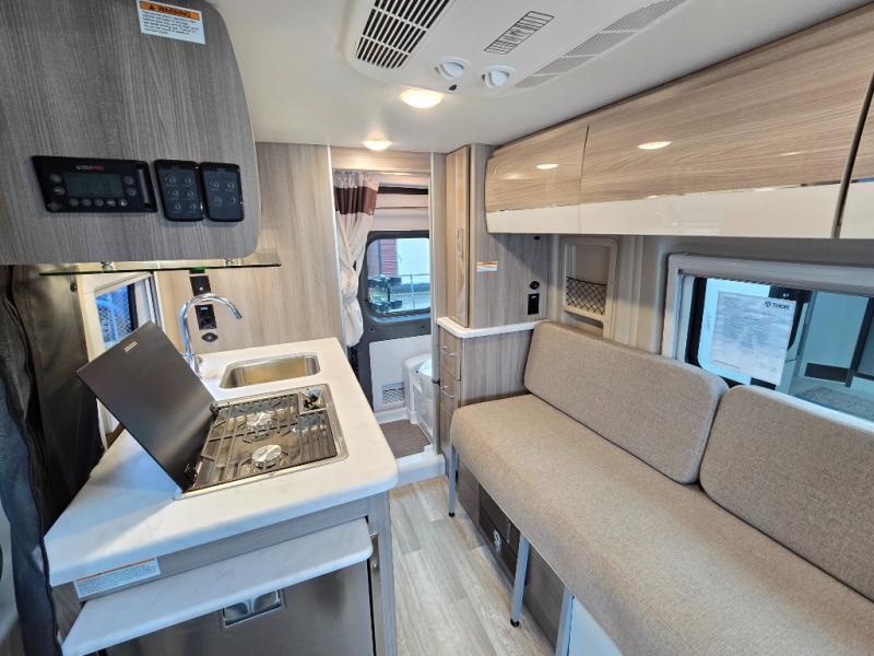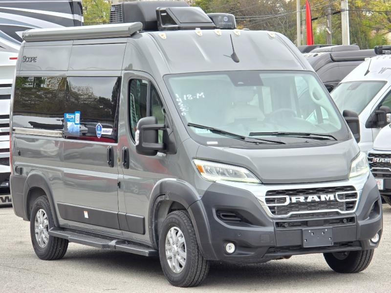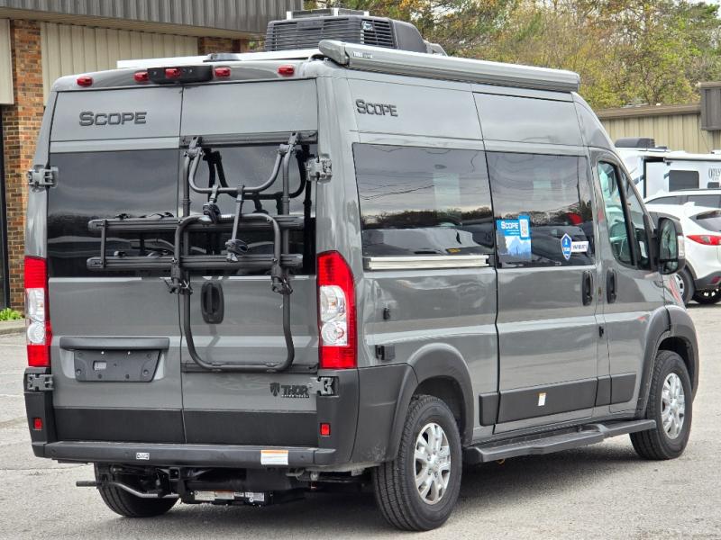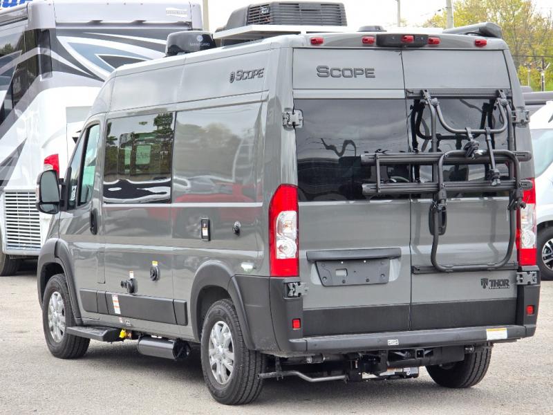 Each one of these Thor Motor Coach Scope Class B gas motorhomes are built for those who want to explore the great outdoors in comfort! They are front wheel drive and constructed with a RAM Promaster 1500 XT chassis, plus a 3,500 lb. trailer hitch with 4-pin connector so you can haul even more items with you. The side steps make it easier to enter and exit the units, and the entryway screen door is an added bonus. The single door 12V electric refrigerator is powered directly from the coach batteries which are charged by the quiet Onan® RV QG 2800 gas generator. You will also enjoy the residential vinyl flooring, premium window privacy roller shades, pressed countertops in the kitchen, and Euro-style upper cabinet doors for added comfort!