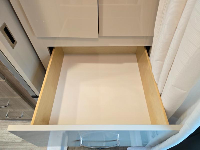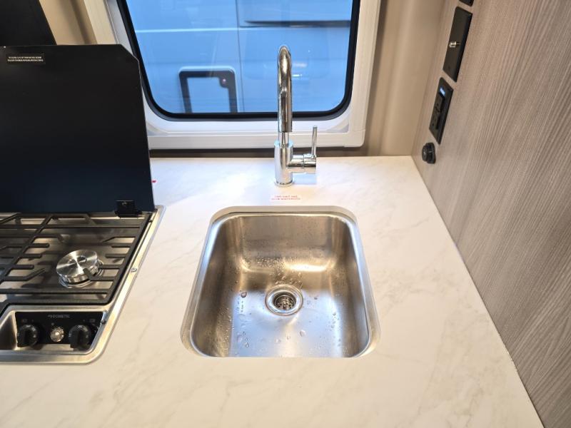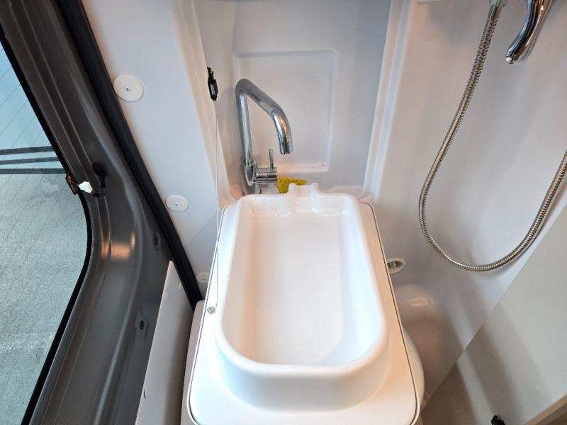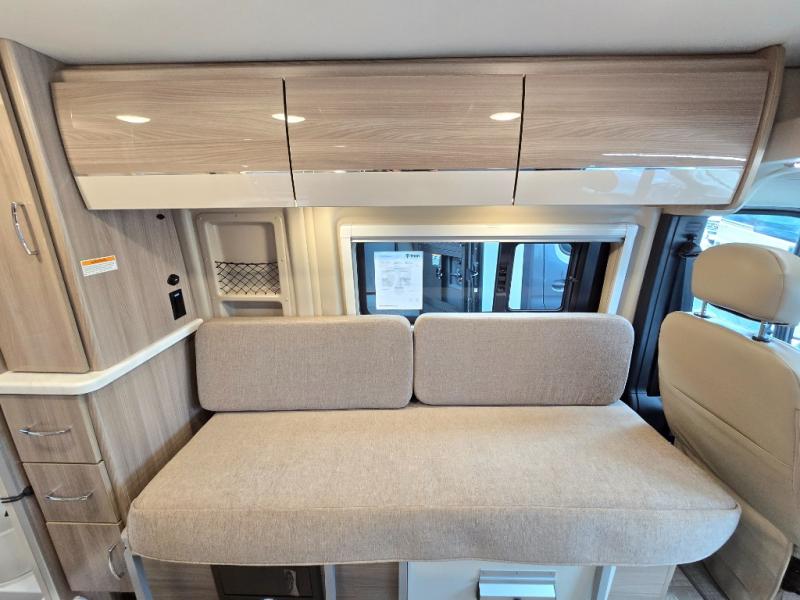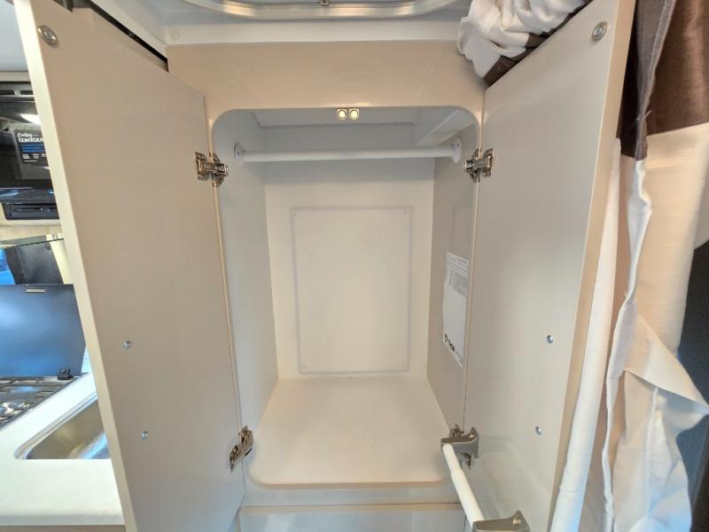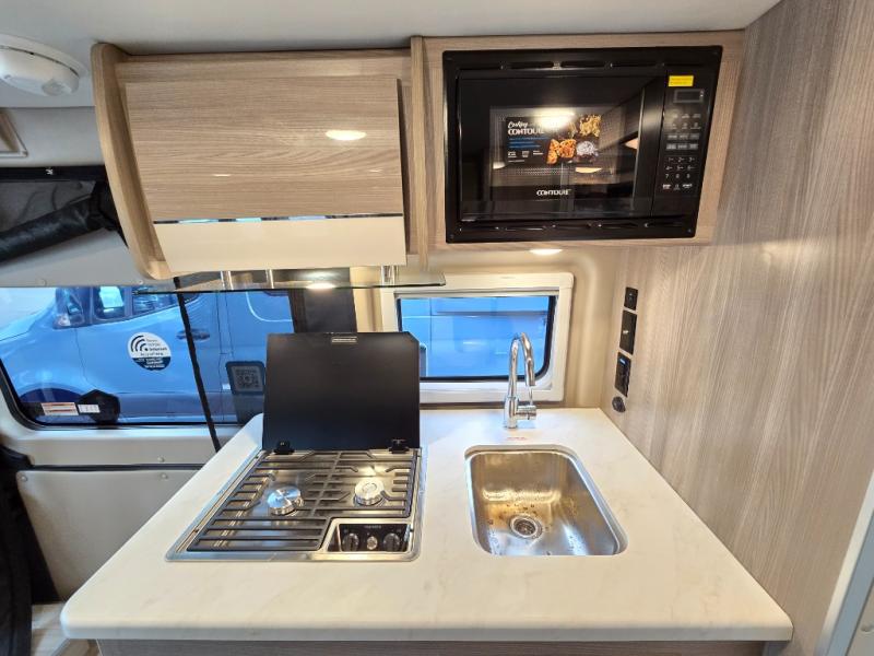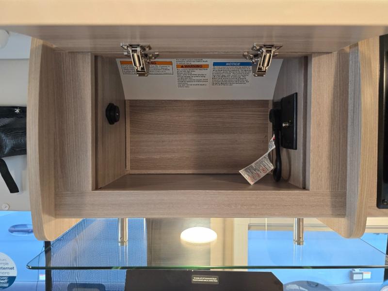 You can go wherever your heart desires with this motorhome! The rear wet bath adds comfort and convenience, plus there is storage to keep your towels close. You can prepare home cooked meals while at the campsite or cook some burgers for a tailgate with the portable cooktop while enjoying a cold beverage kept in the single door 12V electric refrigerator. The swivel captain's chairs are not only comfortable for driving, but also for socializing with guests. The 72" x 47" pull out bed has a removable table and is across from the electronics cabinet which has a HDMI cable and USB charging port.