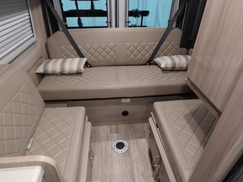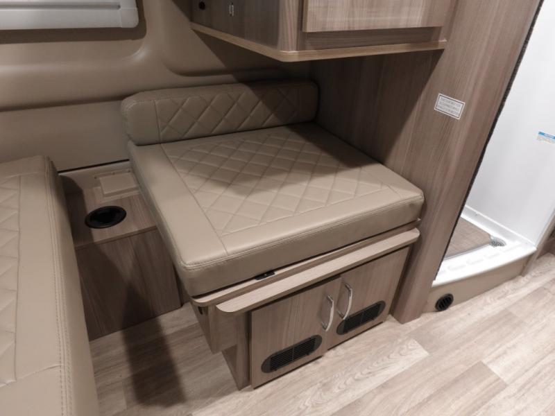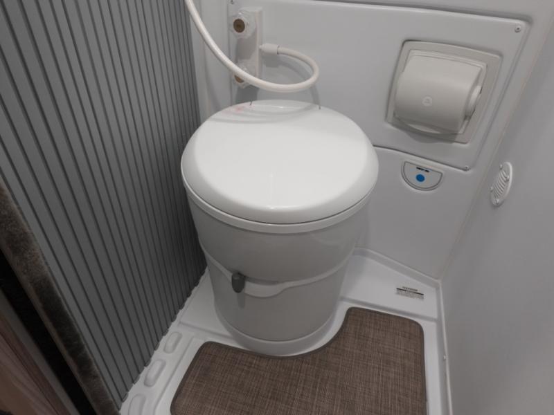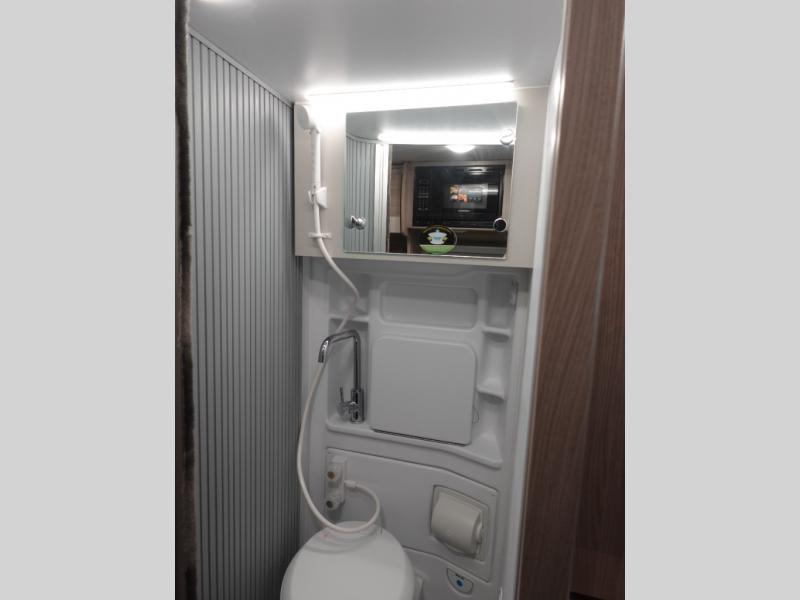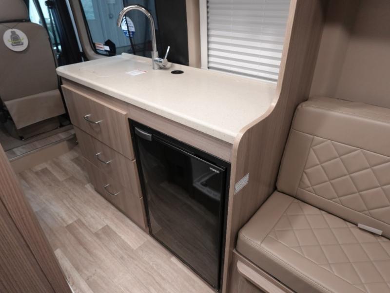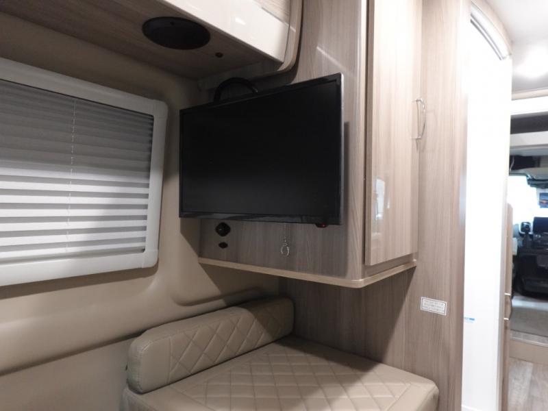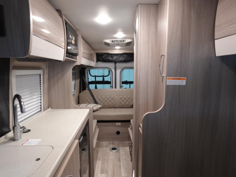 Experience a home away from home with this motorhome! You can lay your head at night on the manual rear sofa bed system and watch your favorite movies on the 24" Smart TV across from it. There is a closet next to the enclosed wet bath so you can keep your towels close. Prepare your best home cooked meals with the single burner induction cooktop and enjoy your meals at the sofa with a removable table on swing arm, and store any leftovers in the single door 12V refrigerator. And the three large opening side windows let in some natural lighting and fresh air!