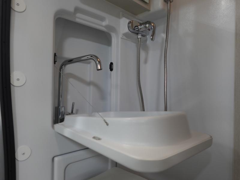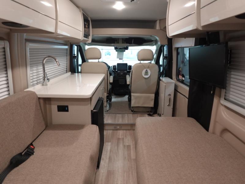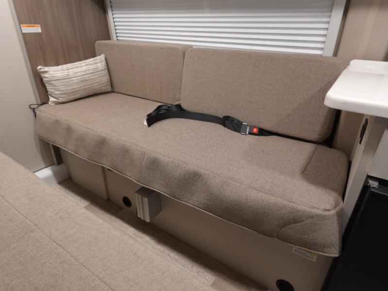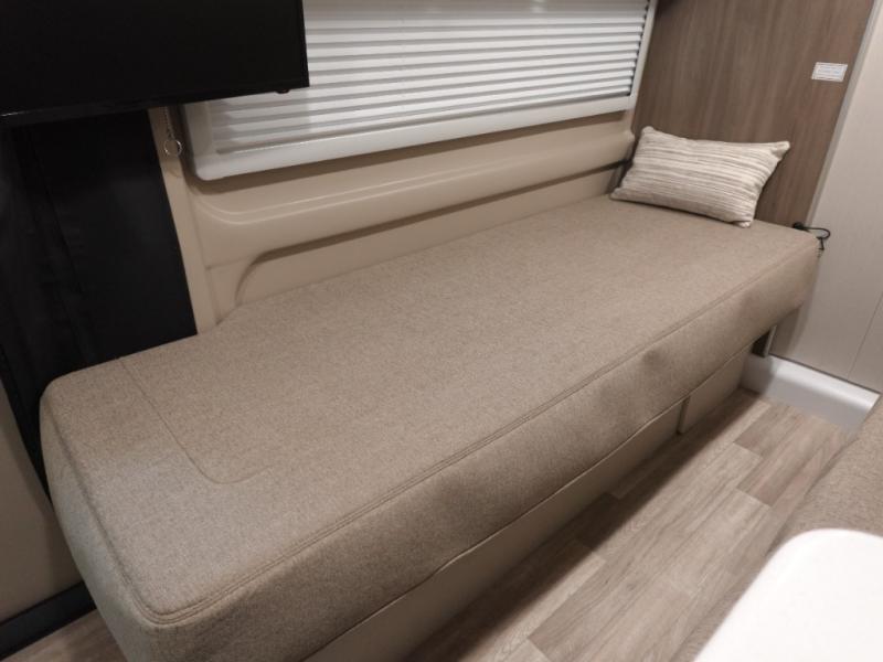 Travel the country with your favorite person in this motorhome! You can freshen up after a long day of traveling in the rear enclosed wet bath with a power vent fan to eliminate unwanted steam and a wardrobe with drawers to store your clothes and towels. Enjoy a good night's rest on the 74" x 80" expanding sleeper sofa once converted, and there is a removable table in between to dine at. The kitchen not only has a single burner induction cooktop, single door 12V refrigerator, and convection microwave, but also a flip-up countertop for more space. There are even large opening side windows to let in some fresh air and natural lighting!