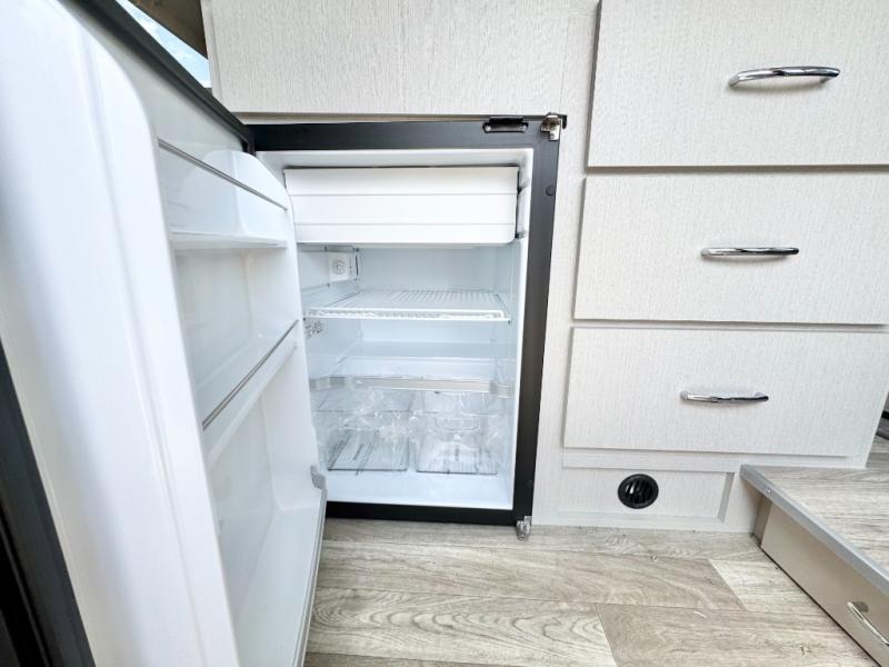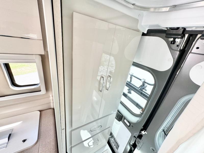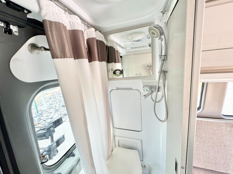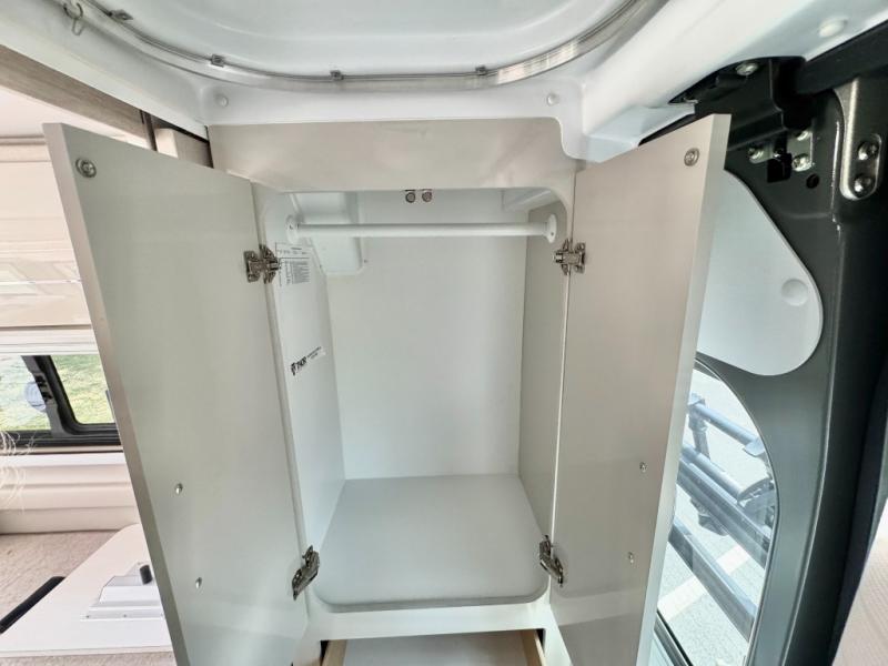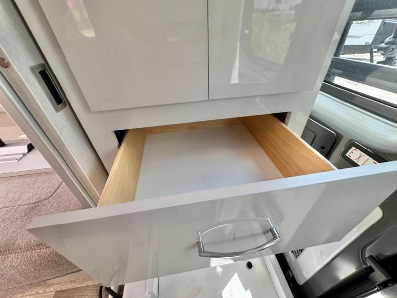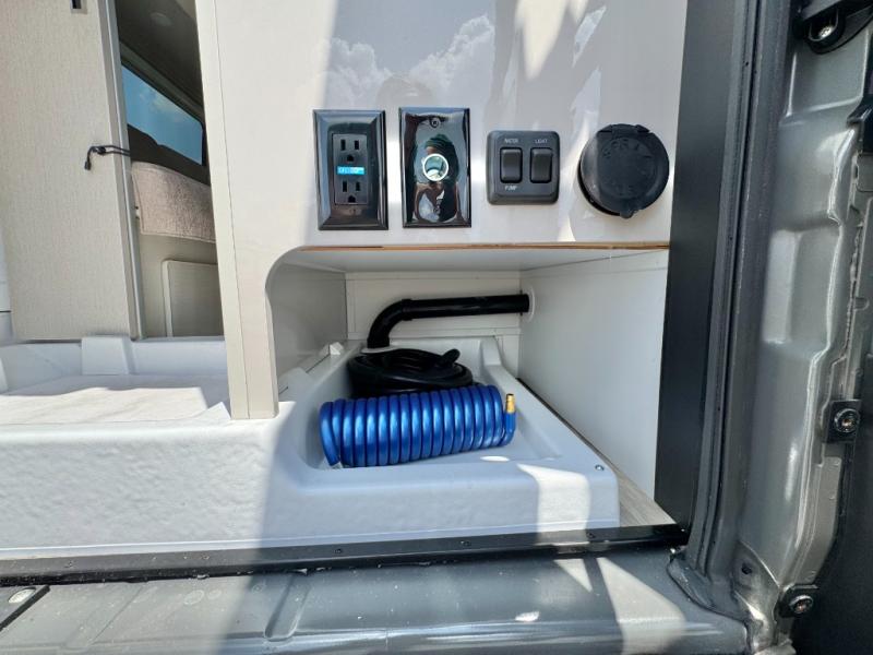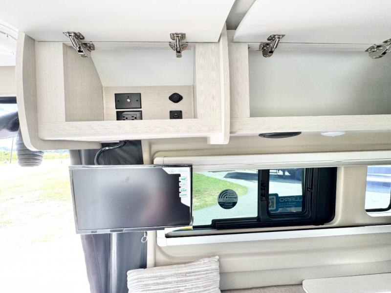 This Tellaro Class B gas motorhome has a very helpful kitchen with a pop-out outlet, a flip-up countertop, and a microwave oven! There is a removable sofa table so that you can combine the two twin-size beds together to create one large 74" x 80" expanding sleeper sofa bed. There are pocket doors at the wet bath's entrance to utilize space well, and inside the bathroom you will find a wardrobe and drawers to keep your linens and toiletries safely tucked away. Once you're done adventuring for the day, you can sit back, rest, and enjoy a show on the 24" Smart TV!