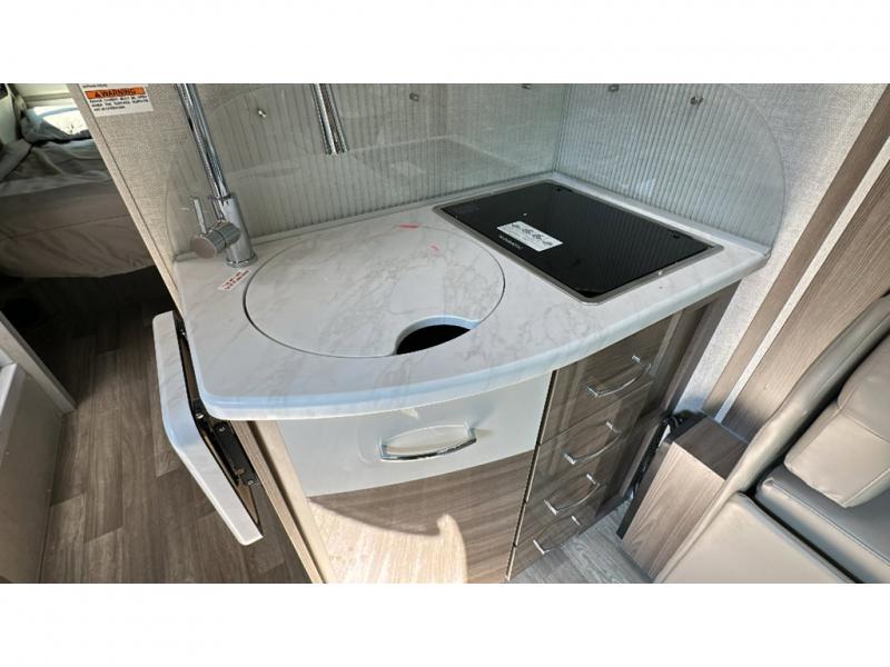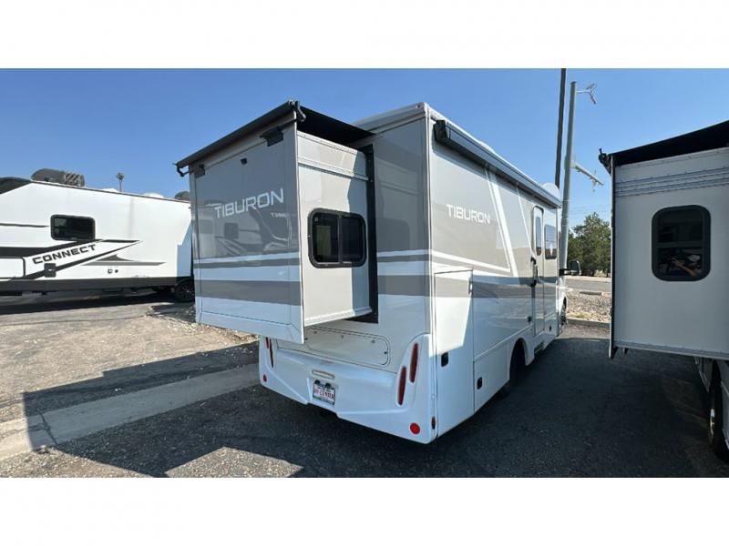 You will be well on your way to unforgettable journeys when you purchase the Thor Motor Coach Tiburon Sprinter Class C diesel motorhome and add it to your line-up! What makes the Tiburon Sprinter so special are the elegant and stunning interiors combined with the eye-catching exterior and powerful Mercedes-Benz Sprinter chassis with a 2.0L l-4 engine and 211HP. You will stay safe as you travel because the Mercedes-Benz safety package includes active braking assist, attention assist, active lane keeping assist, a wet wiper system, and a distance regulator distronic plus. As you tackle each adventure, you'll enjoy the cockpit features that allow you to enjoy traveling, like the Mercedes-Benz multimedia dash radio with Bluetooth®, navigation, and SiriusXM® and the rearview mirror with back-up system. And don't overlook the electrical and plumbing features! You will be impressed by the Winegard® ConnecT™ 2.0 Wi-Fi/4G/TV antenna, tankless water heater, and 200W solar charging system with power controller.