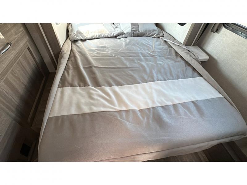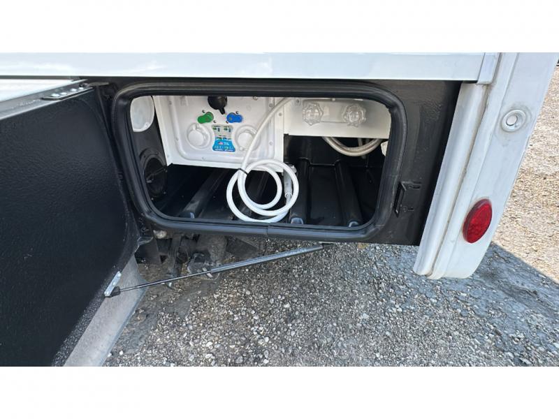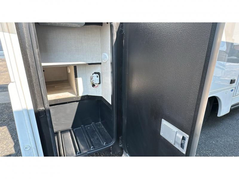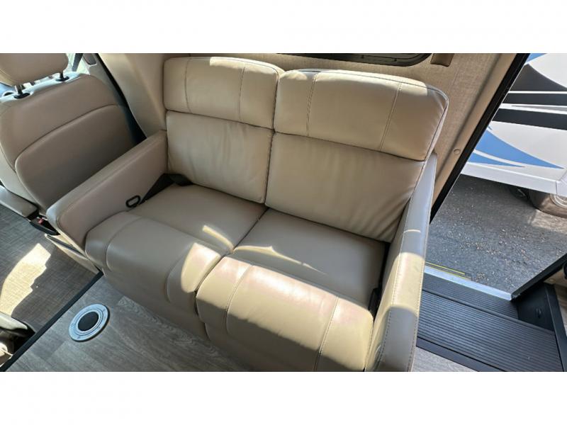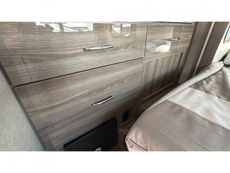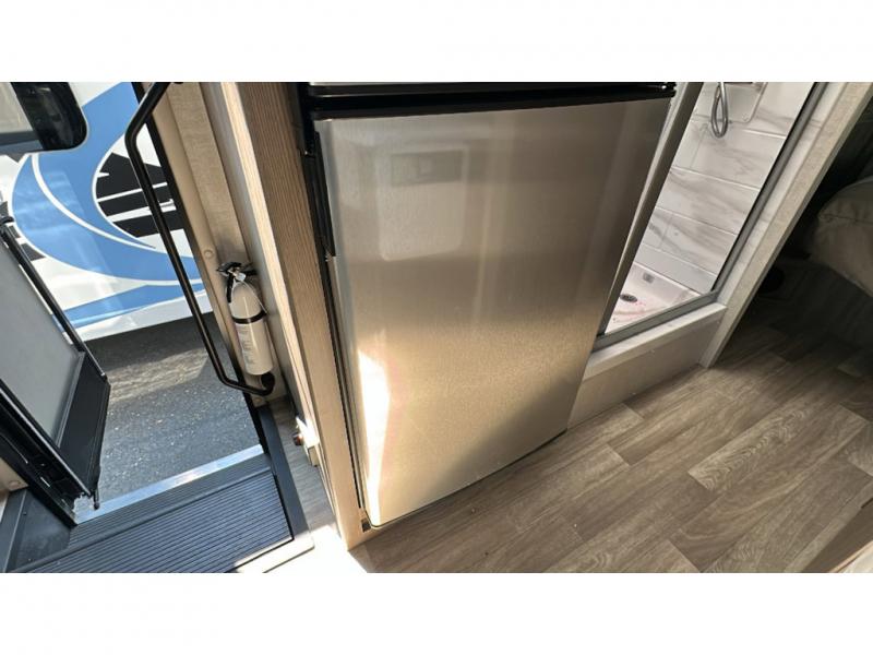 Whatever you want to do and wherever you want to go, take this Tiburon Sprinter Class C diesel motorhome with you! It will offer you a high level of comfort and an exceptional amount of convenience with its many unique additions, like the USB charging port, the window privacy roller shades, telescoping ladder for the bunk above the cab, and the flip-up countertop extension in the kitchen. Sit back and relax on the theater seating and the 68.5" dinette, and enjoy some entertainment from the 39" LED TV. The separated bathroom has the toilet and vanity on one side of the coach and the 24" x 32" shower on the other, and the private bedroom has a flip-up full size bed slide for more interior space, plus a wardrobe for your clothes.