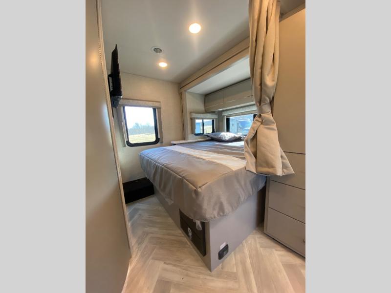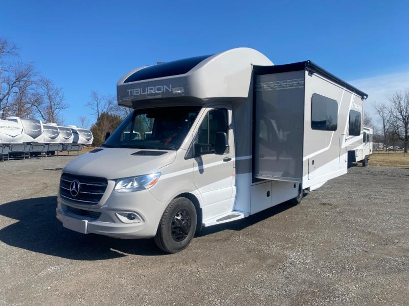 You will be well on your way to unforgettable journeys when you purchase the Thor Motor Coach Tiburon Sprinter Class C diesel motorhome and add it to your line-up! What makes the Tiburon Sprinter so special are the elegant and stunning interiors combined with the eye-catching exterior and powerful Mercedes-Benz Sprinter chassis with a 2.0L l-4 engine and 211HP. You will stay safe as you travel because the Mercedes-Benz safety package includes active braking assist, attention assist, active lane keeping assist, a wet wiper system, and a distance regulator distronic plus. As you tackle each adventure, you'll enjoy the cockpit features that allow you to enjoy traveling, like the Mercedes-Benz multimedia dash radio with Bluetooth®, navigation, and SiriusXM® and the rearview mirror with back-up system. And don't overlook the electrical and plumbing features! You will be impressed by the Winegard® ConnecT™ 2.0 Wi-Fi/4G/TV antenna, tankless water heater, and 200W solar charging system with power controller.