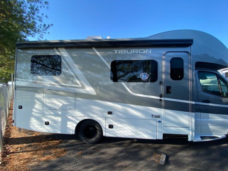 You will be well on your way to unforgettable journeys when you purchase the Thor Motor Coach Tiburon Sprinter Class C diesel motorhome and add it to your line-up! What makes the Tiburon Sprinter so special are the elegant and stunning interiors combined with the eye-catching exterior and powerful Mercedes-Benz Sprinter chassis with a 2.0L l-4 engine and 211HP. You will stay safe as you travel because the Mercedes-Benz safety package includes active braking assist, attention assist, active lane keeping assist, a wet wiper system, and a distance regulator distronic plus. As you tackle each adventure, you'll enjoy the cockpit features that allow you to enjoy traveling, like the Mercedes-Benz multimedia dash radio with Bluetooth®, navigation, and SiriusXM® and the rearview mirror with back-up system. And don't overlook the electrical and plumbing features! You will be impressed by the Winegard® ConnecT™ 2.0 Wi-Fi/4G/TV antenna, tankless water heater, and 200W solar charging system with power controller.