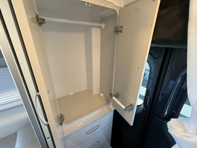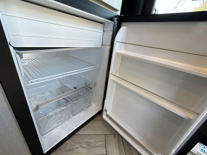 The perfect traveling companion for two who enjoy life on the road. The captain's chairs up front swivel to provide more seating in back, plus you have a 70" x 70" expandable sleeper sofa with a removable table nearby. The portable cooktop allows you to make meals easily when stopped, and there is also a sink for cleaning up and refrigerator as well. You will find a flip-down TV in the living area located in front that can be viewed from anywhere in back! A wet bath in the very back allows all travelers to stay clean and fresh during the trip, and there is a wardrobe and drawers to keep your clothing and personal items neat and tidy while you travel.