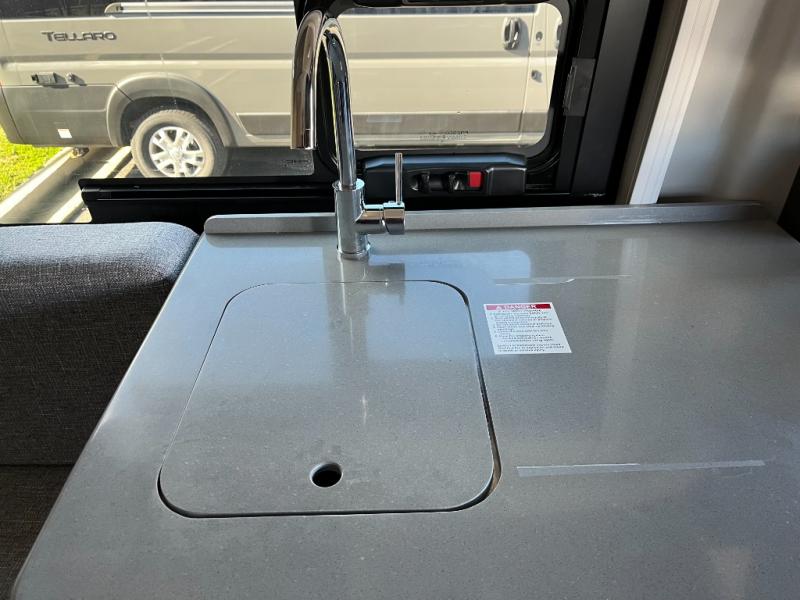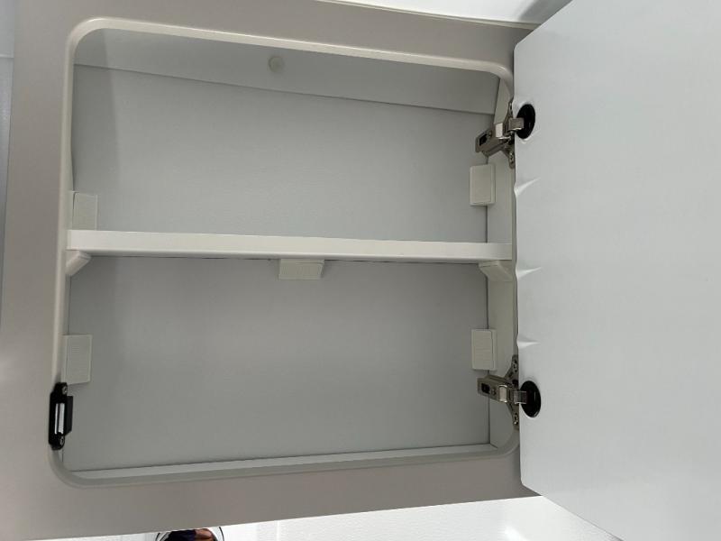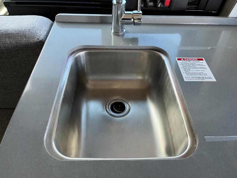 The Tranquility 19L’s kitchen is designed with convenience and practicality in mind. Featuring a cooktop, microwave, refrigerator, and ample counter space, this kitchen gives you everything you need to prepare breakfast before you hit the trail or dinner after a day of outdoor adventure. Smart storage solutions help keep your cookware and pantry essentials neatly organized and within reach.