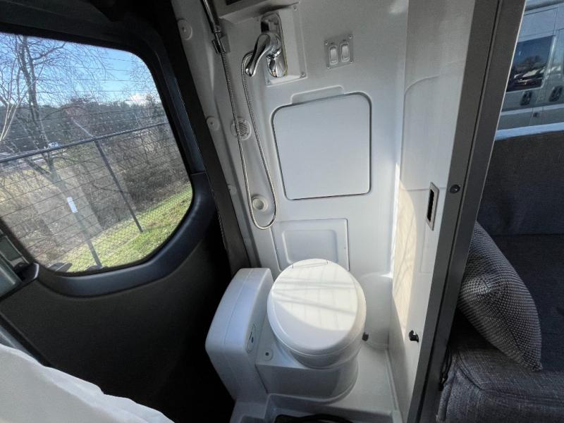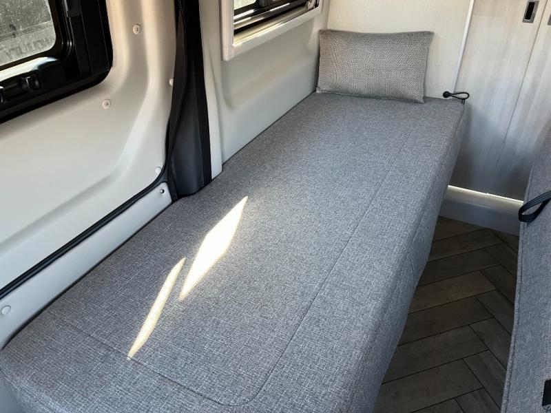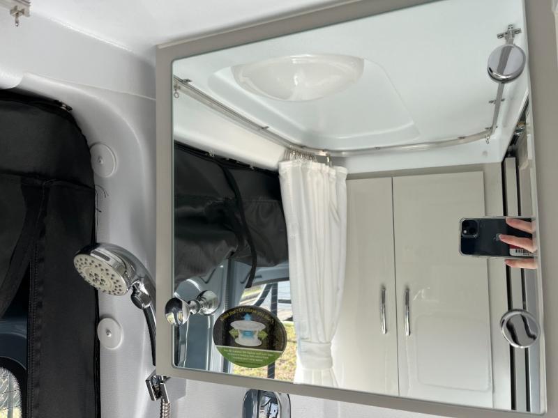 After a full day of exploring, the comfortable sleeping area offers a peaceful retreat with a restful bed and thoughtful storage for personal items. The full bathroom is conveniently located and includes a shower, sink, and toilet — delivering the everyday comfort and functionality you want on the road.
