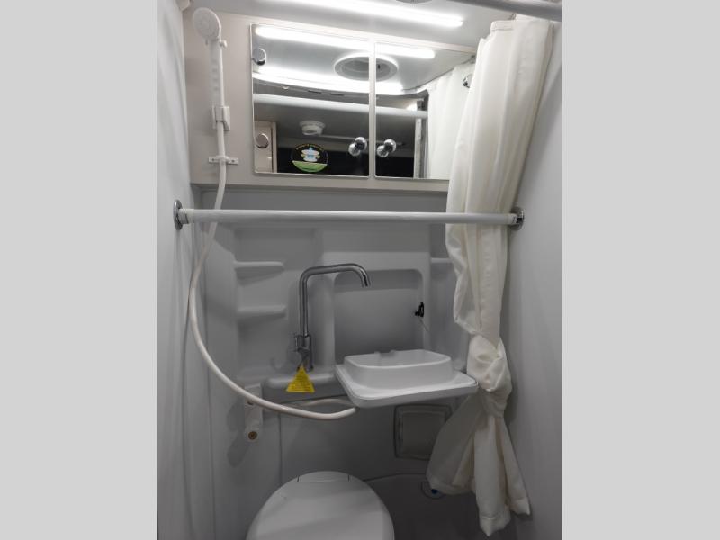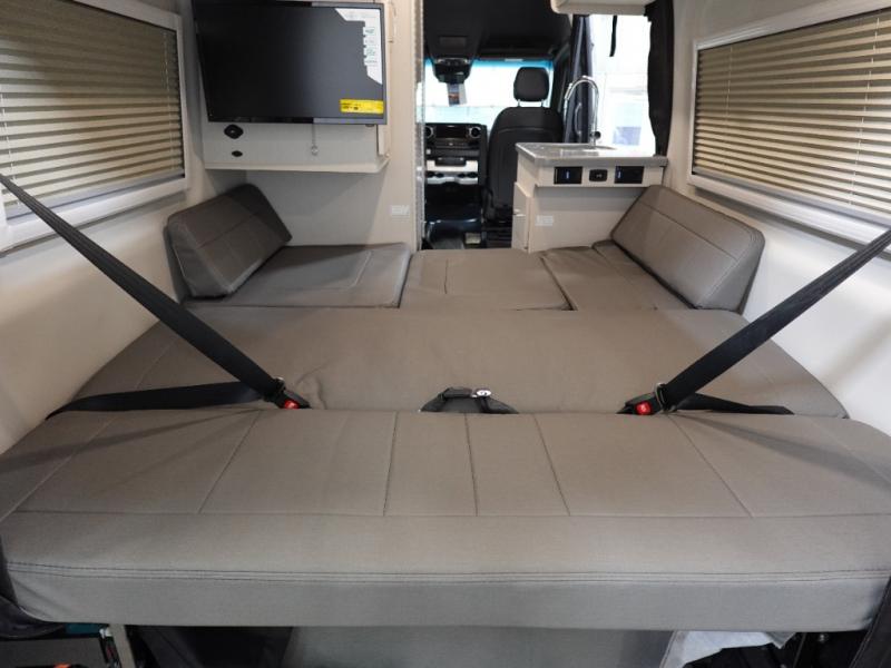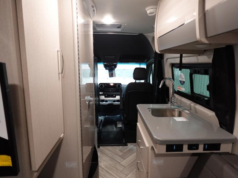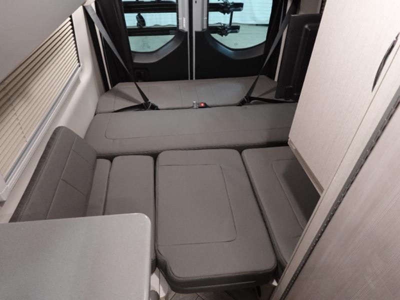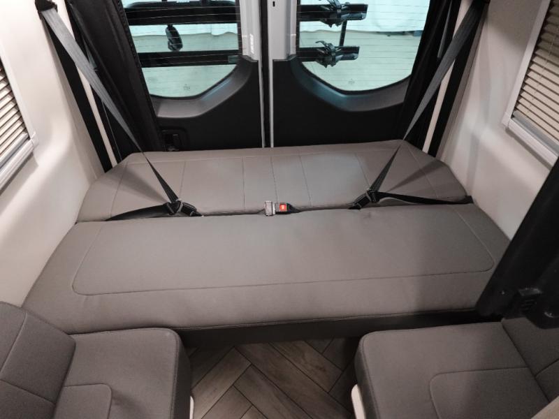 Nothing is more tranquil than this Tranquility Class B diesel motorhome! Enjoy the freedom to create delicious meals while on the road with the single burner induction cooktop and a microwave oven, and keep your leftovers and favorite foods chilled in the single-door 12V electric refrigerator. There is an electric fold-out sleeping area with a removable table, plus a 24" Smart TV to keep you entertained. This model also includes a wet bath with a cassette toilet, a power bath vent, plus a shower with a deluxe curtain.
