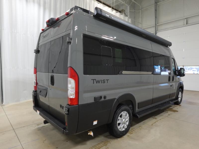 Plenty of amenities are packed into the Thor Motor Coach Twist Class B motorhome. Built on the RAM ProMaster® 3500XT gas window van chassis, these come with a 3,500 lb trailer hitch, an Onan® RV QG 2800 gas generator, and a Truma® Combi Eco Hydronic furnace and water heating system. You'll have a convenient control center in the Rapid Camp+® Multiplex wiring control system, which allows you to operate features like lights, generator, HVAC, and more. You will feel right at home with residential vinyl flooring, Welformed interior wall panels, plus pressed countertops with an undermount sink and sink covers to name a few interior comforts!