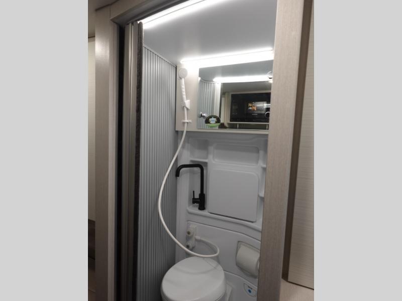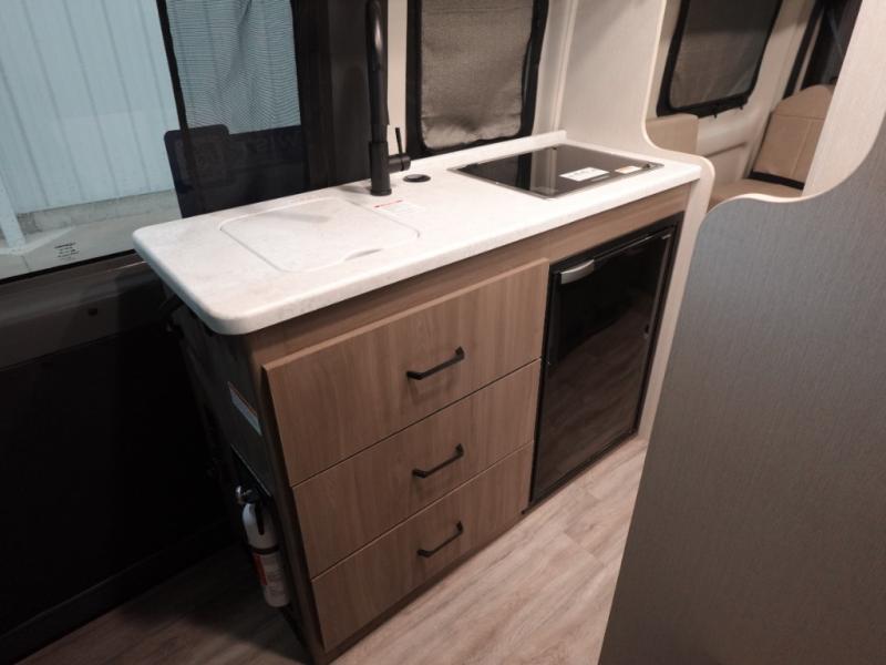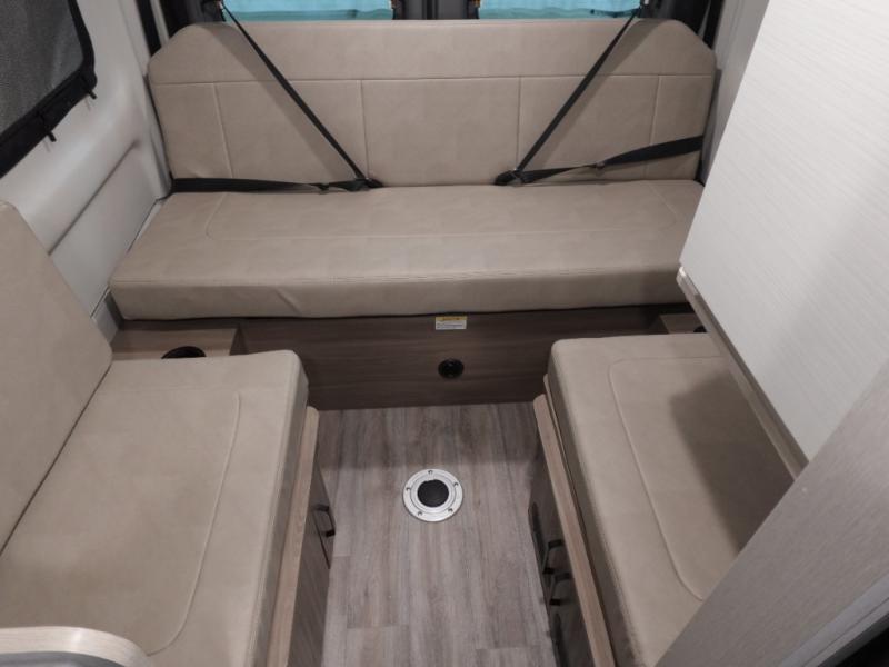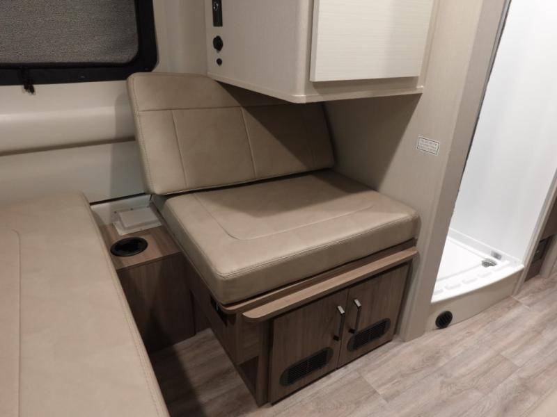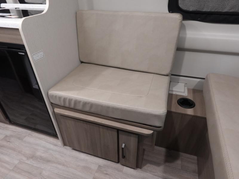 Flexibility is the name of the game in this Thor Motor Coach Twist! The rear sofa converts to a 74" x 71" sleeping area, but during the day the removable table and storage area make for a comfortable living space. If you'd rather eat up front, you can sit on the sofa and use the removable table there, which is on a swing arm for convenience. The swivel driver and passenger captain's chairs can also serve as extra seating when you're not in motion. The kitchen offers a single door 12V refrigerator and two burner cooktop. You'll also appreciate the fully enclosed wet bath which comes with a cassette toilet and shower.