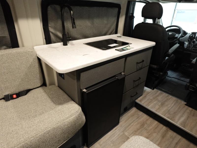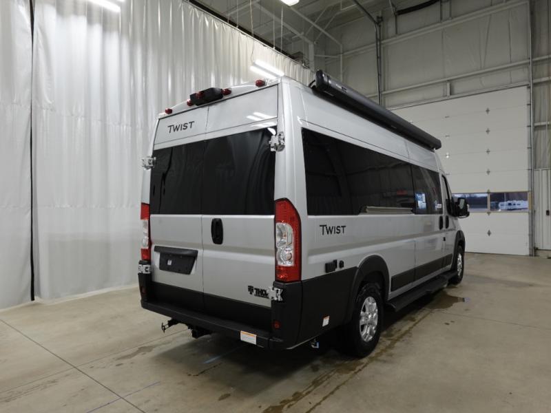 Plenty of amenities are packed into the Thor Motor Coach Twist Class B motorhome. Built on the RAM ProMaster® 3500XT gas window van chassis, these come with a 3,500 lb trailer hitch, an Onan® RV QG 2800 gas generator, and a Truma® Combi Eco Hydronic furnace and water heating system. You'll have a convenient control center in the Rapid Camp+® Multiplex wiring control system, which allows you to operate features like lights, generator, HVAC, and more. You will feel right at home with residential vinyl flooring, Welformed interior wall panels, plus pressed countertops with an undermount sink and sink covers to name a few interior comforts!