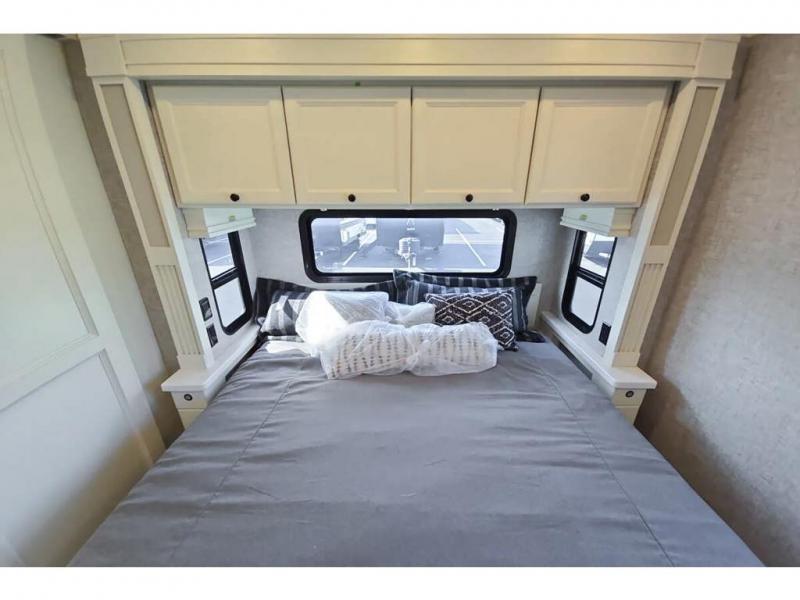 Each Allegro Bay Super C diesel coach by Tiffin Motorhomes sits on a durable Freightliner Custom S2RV chassis with an impressive 360 HP Cummins B6.7 engine for power you can feel. You will appreciate smooth handling thanks to the Trac-Tech full-time NoSPIN differential single rear axle and the automatic traction control. There is a manual release valve for the rear air suspension for added convenience, plus a 12,000 lb. towing capacity that will allow you to bring along the family car or even a horse trailer! This coach includes a Truma AquaGo Comfort instant water heater, AGM extended cycle house batteries, an 8.0 Onan Quiet Diesel generator, plus many more top of the line amenities. You will also love the new Generation 3 paint schemes, an exterior ladder, new matte finish tile flooring option, plus optional Starlink prep in the sewer bay that will give you the option to have internet while you're away from home!