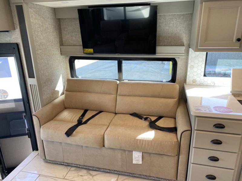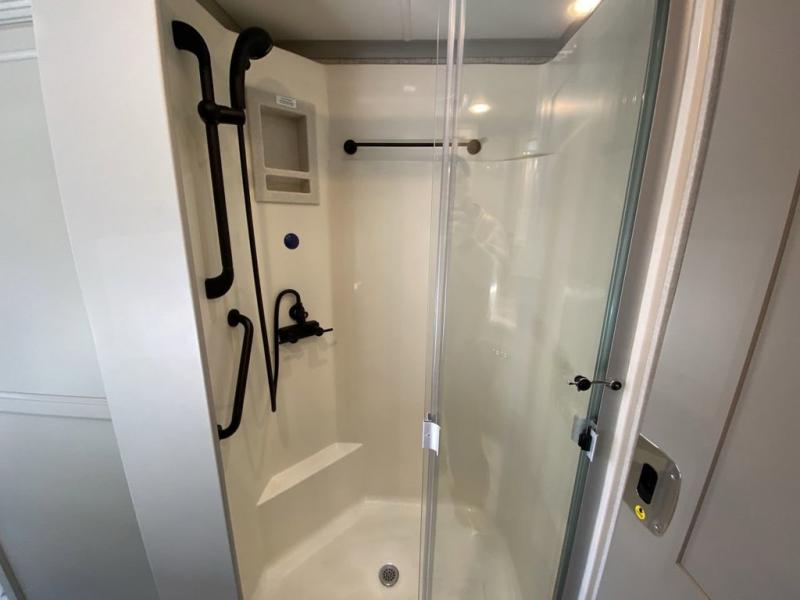 Each Allegro Bay Super C diesel coach by Tiffin Motorhomes sits on a durable Freightliner Custom S2RV chassis with an impressive 360 HP Cummins B6.7 engine for power you can feel. You will appreciate smooth handling thanks to the Trac-Tech full-time NoSPIN differential single rear axle and the automatic traction control. There is a manual release valve for the rear air suspension for added convenience, plus a 12,000 lb. towing capacity that will allow you to bring along the family car or even a horse trailer! This coach includes a Truma AquaGo Comfort instant water heater, AGM extended cycle house batteries, an 8.0 Onan Quiet Diesel generator, plus many more top of the line amenities. You will also love the new Generation 3 paint schemes, an exterior ladder, new matte finish tile flooring option, plus optional Starlink prep in the sewer bay that will give you the option to have internet while you're away from home!