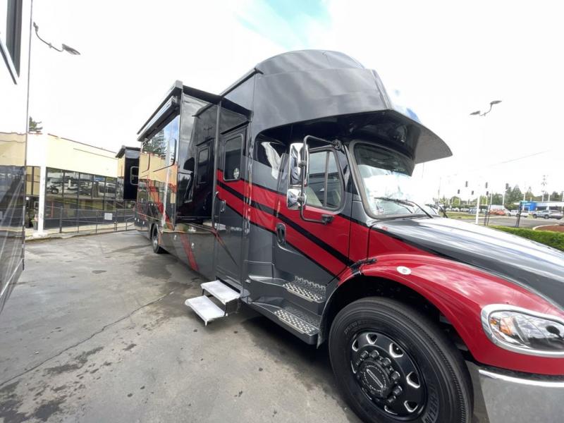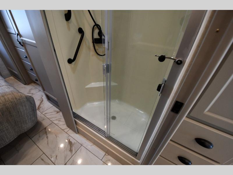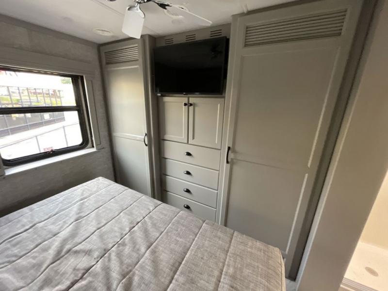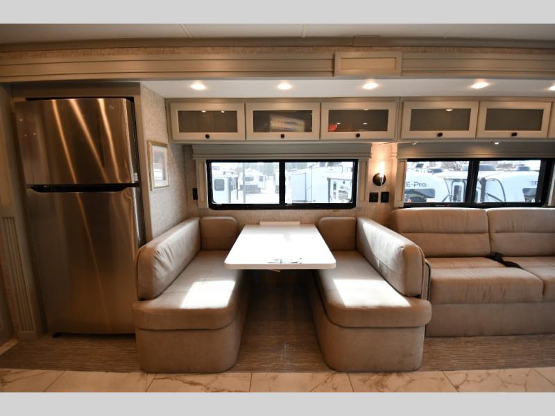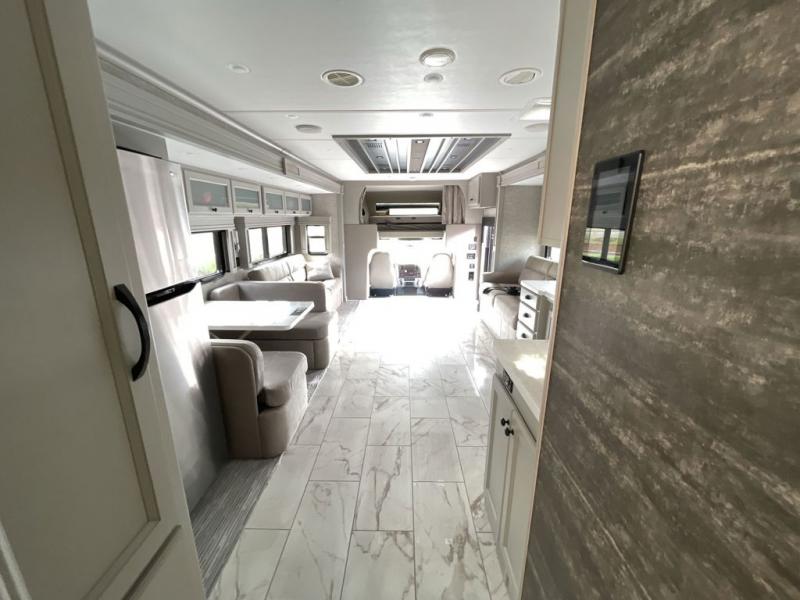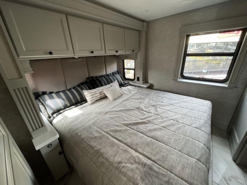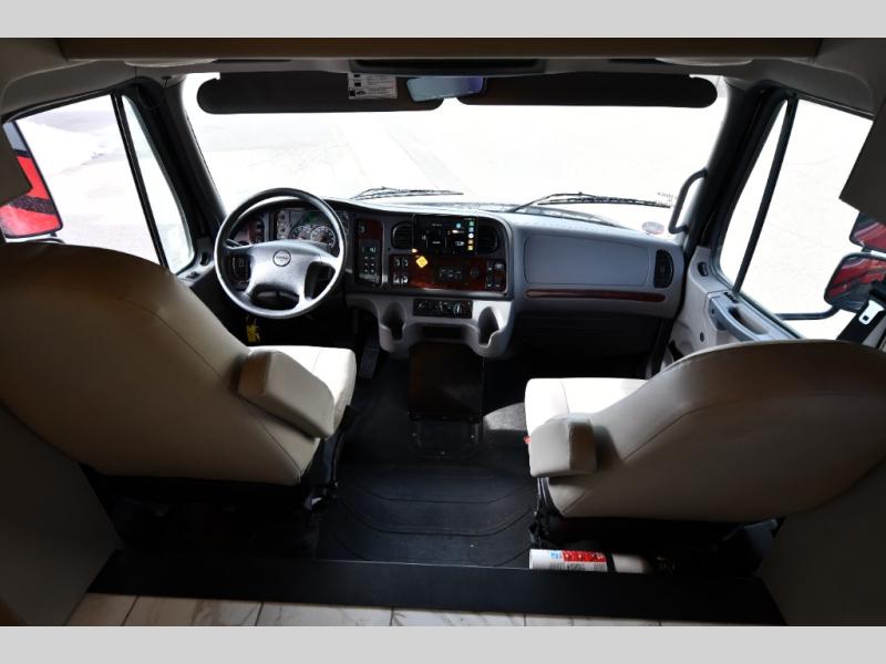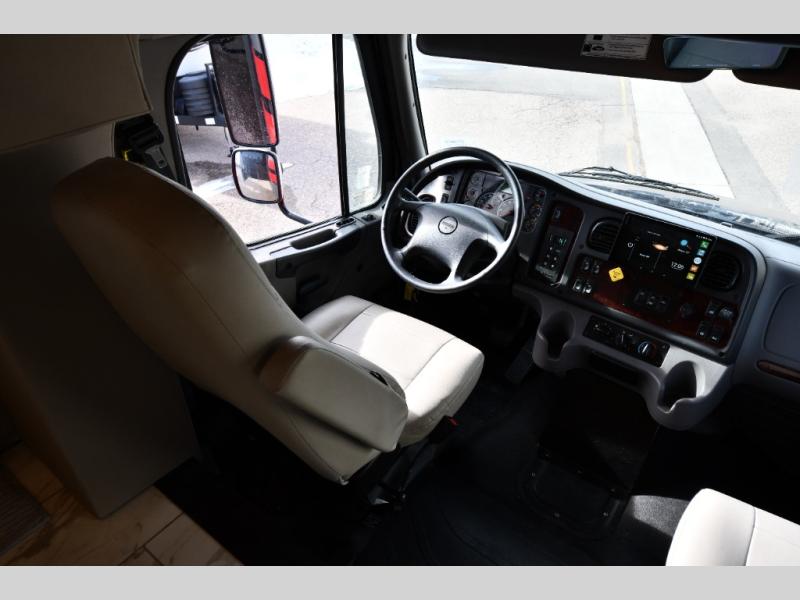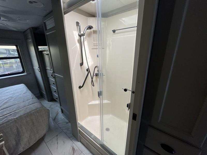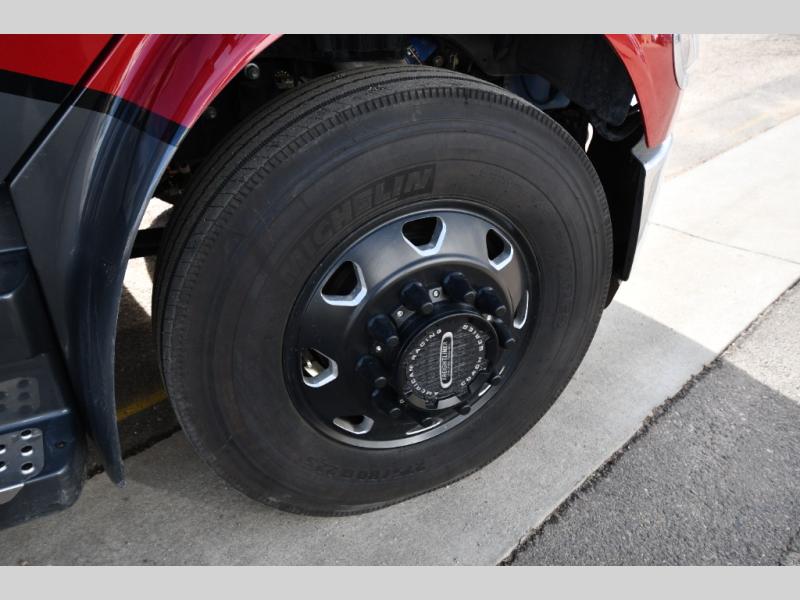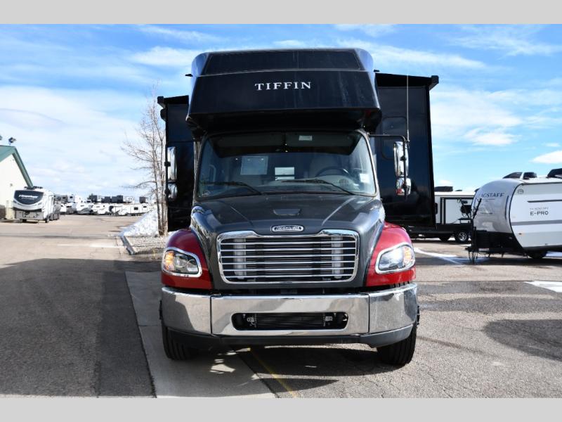 Each Allegro Bay Super C diesel coach by Tiffin Motorhomes sits on a durable Freightliner Custom S2RV chassis with an impressive 360 HP Cummins B6.7 engine for power you can feel. You will appreciate smooth handling thanks to the Trac-Tech full-time NoSPIN differential single rear axle and the automatic traction control. There is a manual release valve for the rear air suspension for added convenience, plus a 12,000 lb. towing capacity that will allow you to bring along the family car or even a horse trailer! This coach includes a Truma AquaGo Comfort instant water heater, AGM extended cycle house batteries, an 8.0 Onan Quiet Diesel generator, plus many more top of the line amenities. You will also love the new Generation 3 paint schemes, an exterior ladder, new matte finish tile flooring option, plus optional Starlink prep in the sewer bay that will give you the option to have internet while you're away from home!