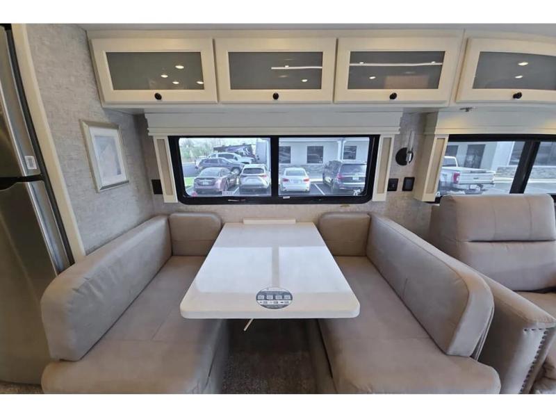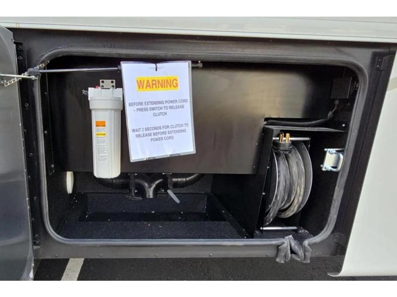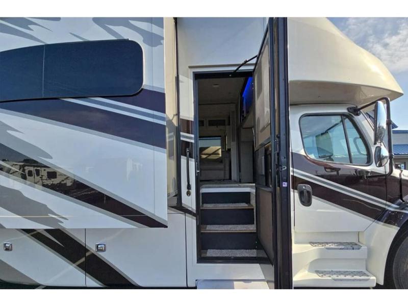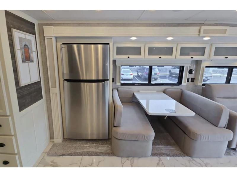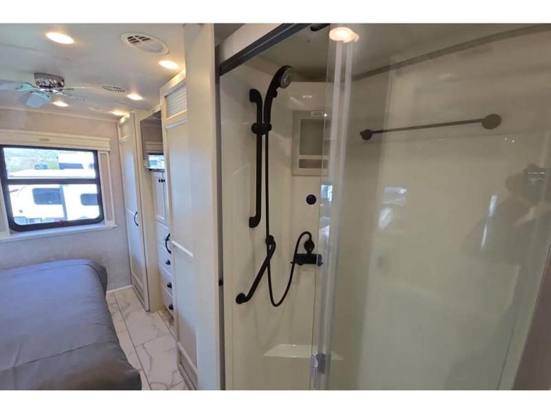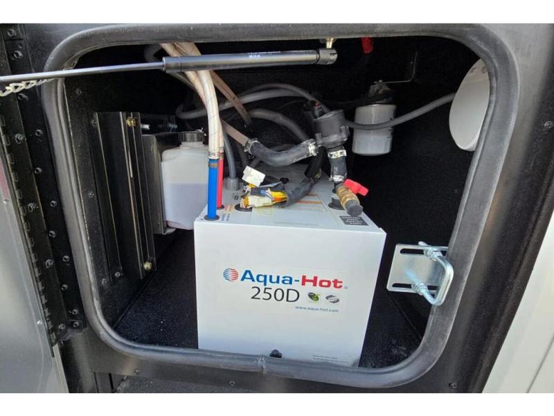 Each Allegro Bay Super C diesel coach by Tiffin Motorhomes sits on a durable Freightliner Custom S2RV chassis with an impressive 360 HP Cummins B6.7 engine for power you can feel. You will appreciate smooth handling thanks to the Trac-Tech full-time NoSPIN differential single rear axle and the automatic traction control. There is a manual release valve for the rear air suspension for added convenience, plus a 12,000 lb. towing capacity that will allow you to bring along the family car or even a horse trailer! This coach includes a Truma AquaGo Comfort instant water heater, AGM extended cycle house batteries, an 8.0 Onan Quiet Diesel generator, plus many more top of the line amenities. You will also love the new Generation 3 paint schemes, an exterior ladder, new matte finish tile flooring option, plus optional Starlink prep in the sewer bay that will give you the option to have internet while you're away from home!