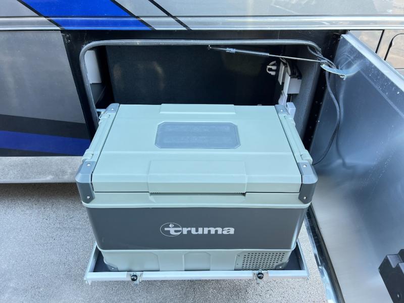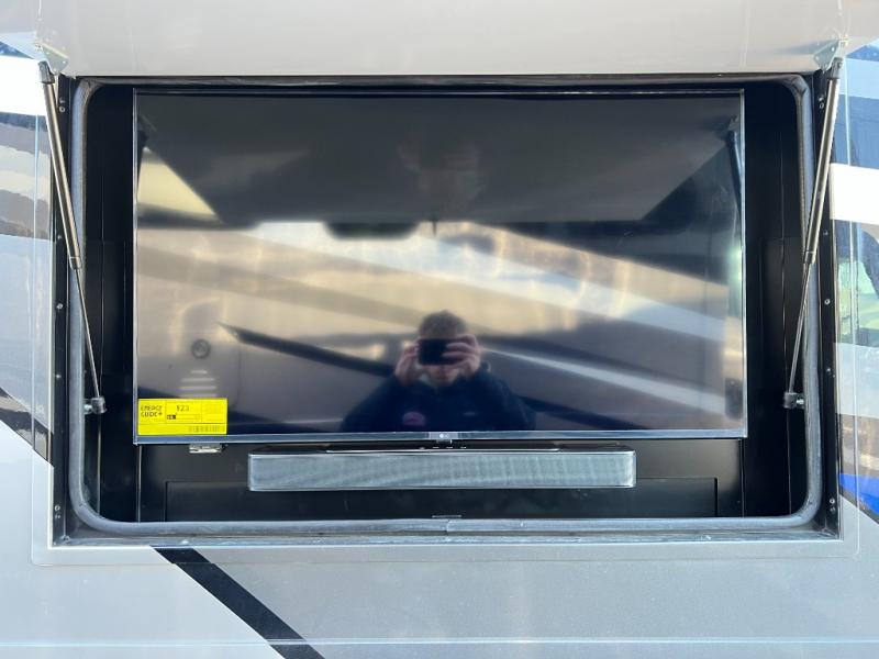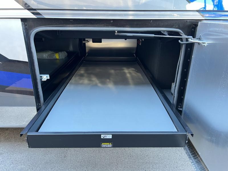 Fours slides, a bath and a half, plus sleeping space for six make this coach family friendly. There are two sofa beds in the main living area, plus a lift TV for your favorite shows. The chef of your group can cook meals on the two burner induction cooktop or in the stainless steel convection microwave with an air fryer, and there is a drawer-type dishwasher that will make clean up easier than ever. This model also includes a residential refrigerator plus pull-out storage and a stack of drawers for snacks galore. Enjoy a great night's rest on the king bed after traveling all day, and the full rear bath will allow you to clean up in luxury. There is even a floor-to-ceiling closet for maximum storage and a stacked washer and dryer; how convenient!