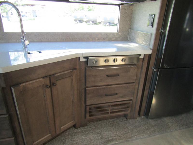 Convenience Upgrades: Central vacuum system, Truma water heater, jute floor tile, and power drop-down bunk enhance functionality and comfort.