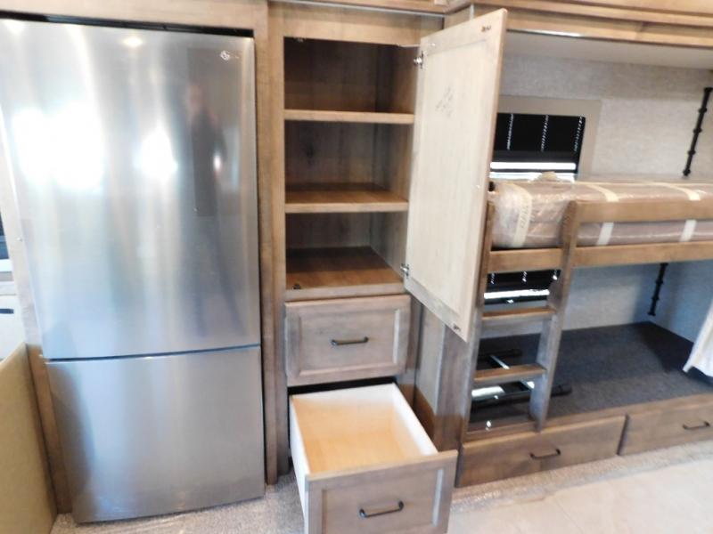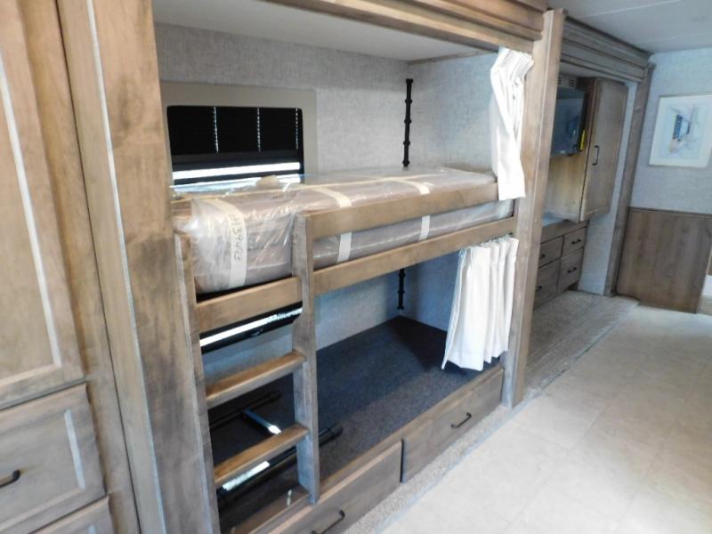 - Two Full Baths: With a full rear bath and an additional full bath across from the bunk beds, you’ll have the convenience and privacy everyone needs, no matter the size of your crew.