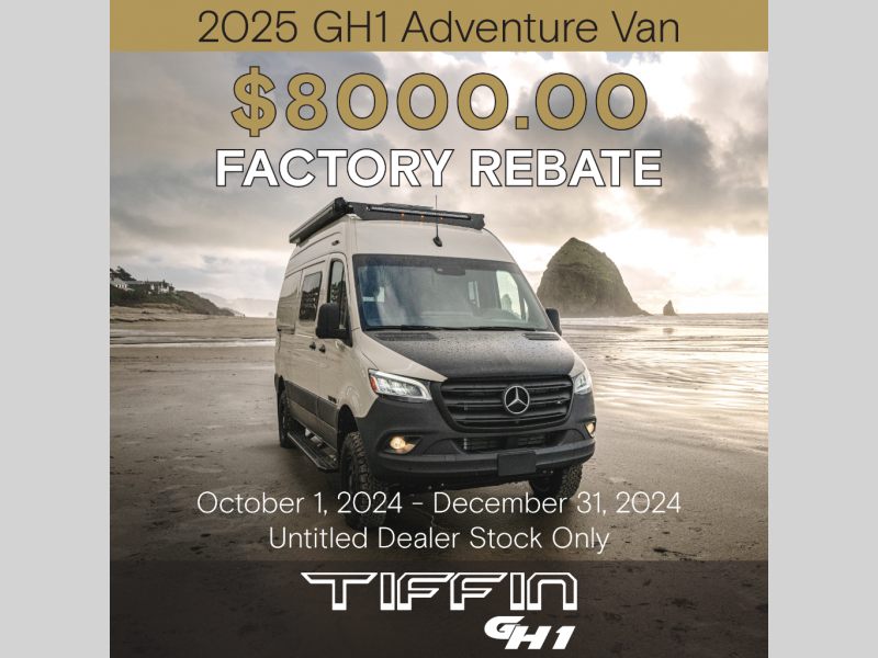 Wherever you dream of going — paved roads or rugged trails — the Tiffin GH1 is ready to take you there, combining premium comfort with rugged durability every step of the way.