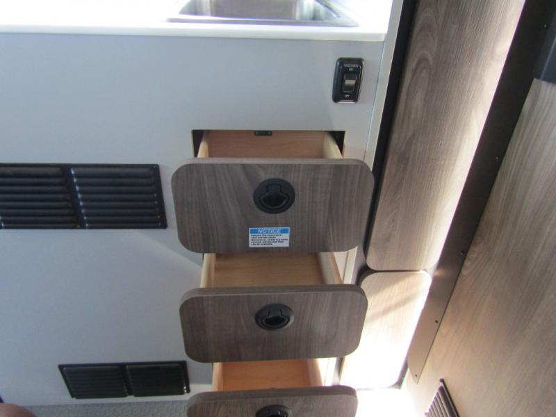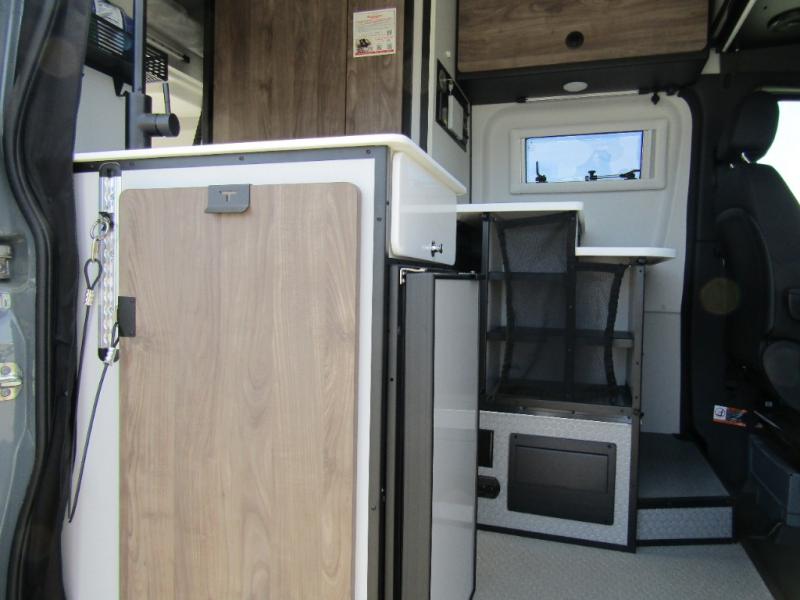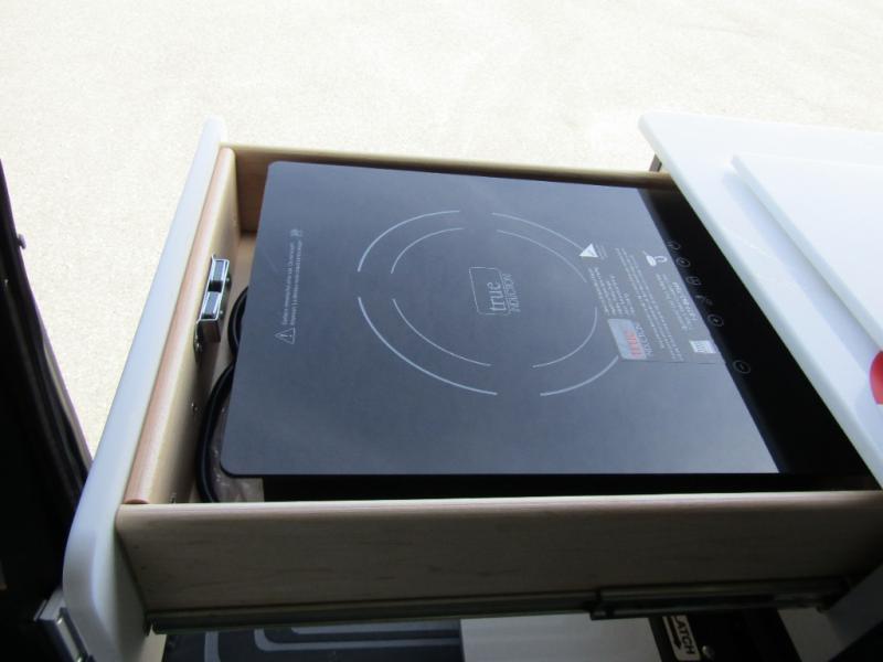 Smart Kitchen: 3.1 cu. ft. 12V refrigerator/freezer, induction cooktop, and tankless water heater with hydronic system.