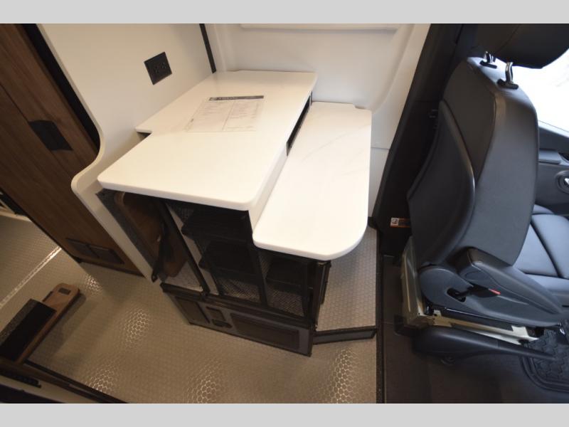 Swivel cab seats and a jump seat give you room to relax, eat, or work on the road. The wall-mounted swivel table and optional adventure bar add even more functionality for work, dining, or organizing your gear.