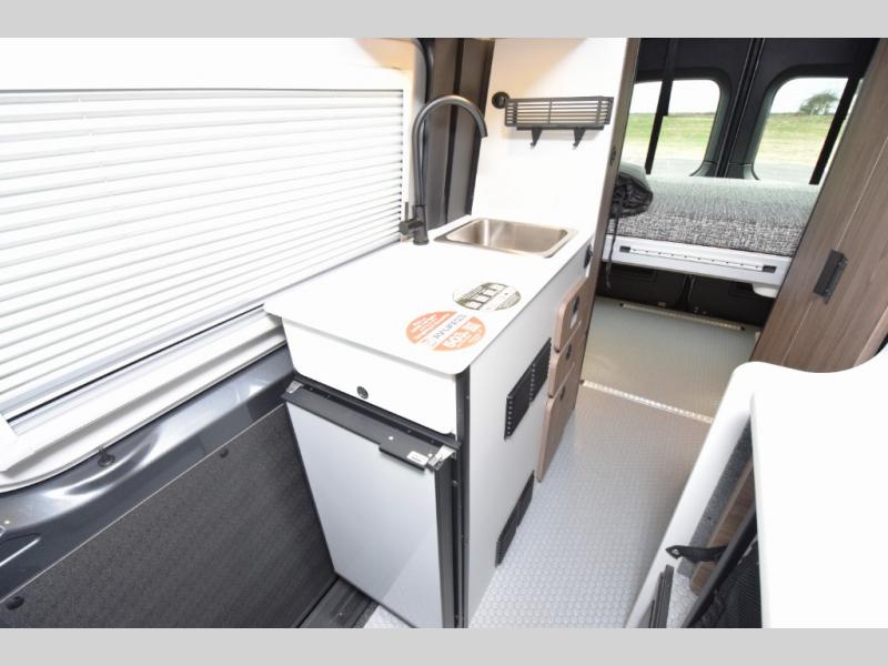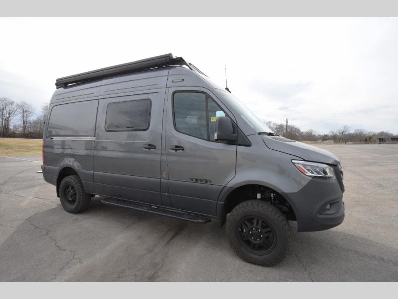The GH1 Class B Diesel Motorhome is built for those who crave freedom and adventure. With its all-wheel drive chassis and Fox Shock suspension, it’s equipped to tackle any terrain, from rugged trails to smooth highways. On-board solar power, climate control with a wall-mounted thermostat, and solid surface countertops enhance your comfort and convenience, while the TecnoForm cabinetry and grey nickel plate flooring add a touch of elegance.