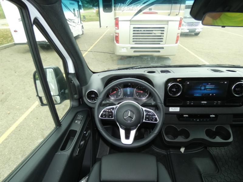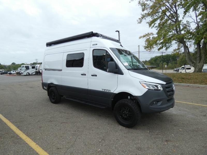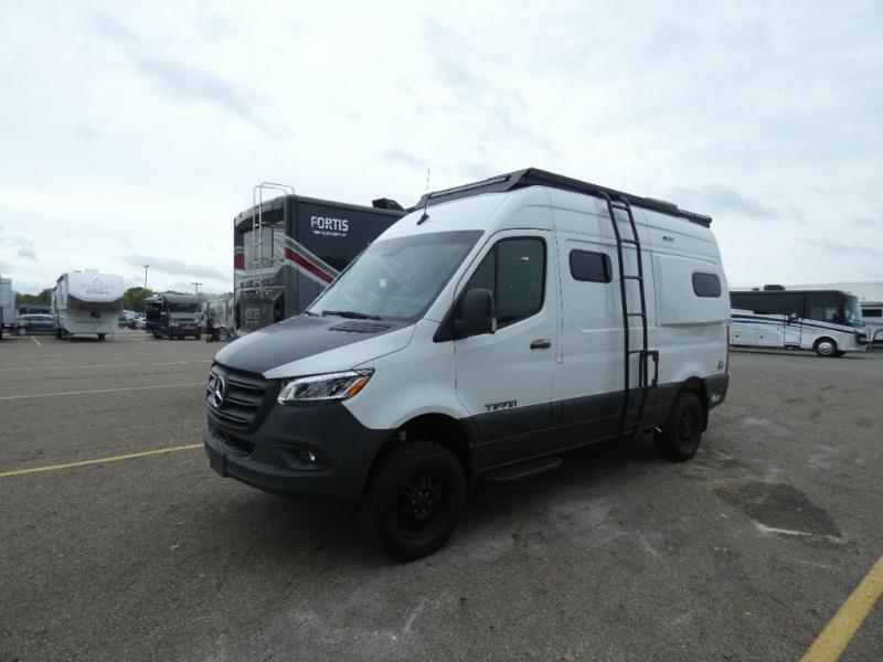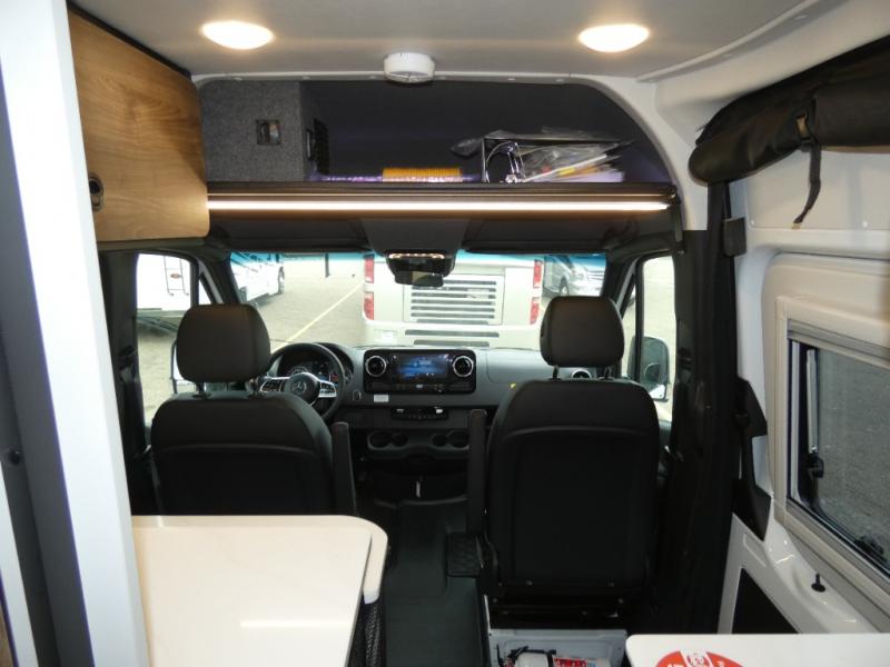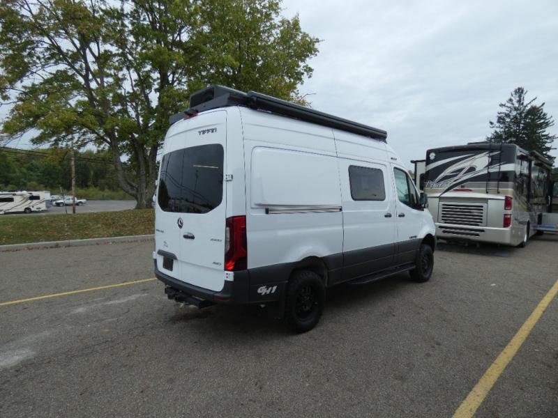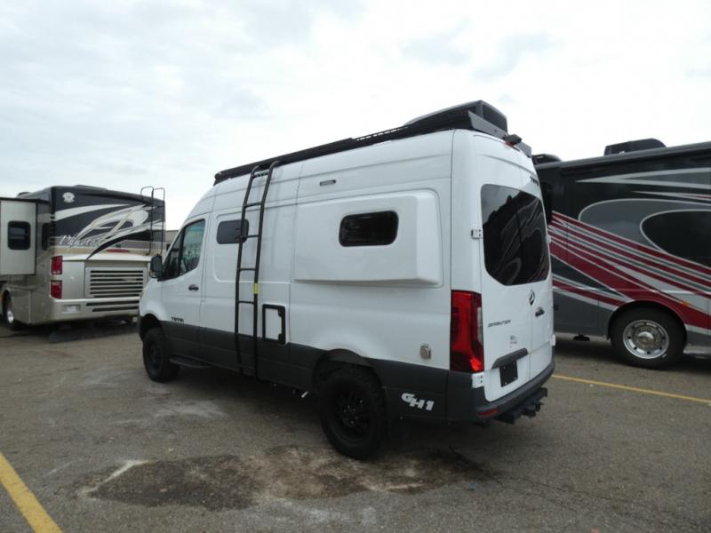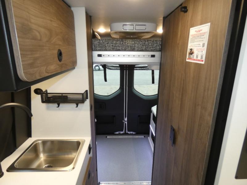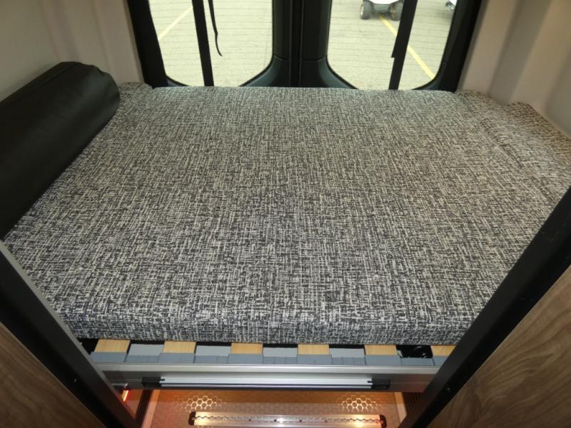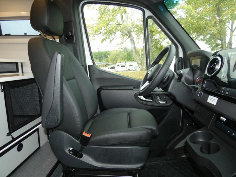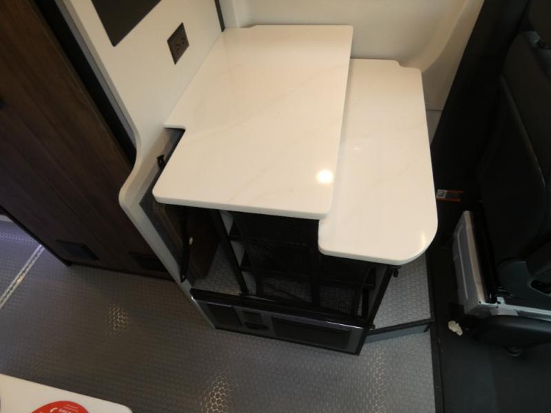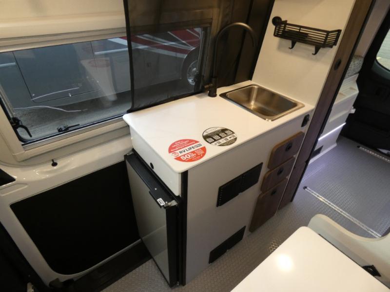 Pick a place, any place, and start packing. This off-road capable diesel van features a 49" x 79" gear garage beneath the power lift bed where you can store camp chairs, paddle boards for the lake, outdoor games and plenty of hiking gear. The on-board wet bath will keep you fresh and clean, and you can easily whip up meals and snacks in the kitchen with a single-burner induction cooktop and refrigerator beneath the counter for your perishables. There is also a sink for cleaning up and a removable counter extension. A jump seat and removable wall mounted swivel table behind the driver's seat can accommodate you for meals or a game of cards. Both front driver and passenger seats swivel to the back so you'll have plenty of seating even with company. At night, the power lift bed will allow you to get a great night's rest so you can enjoy it all again the next day!