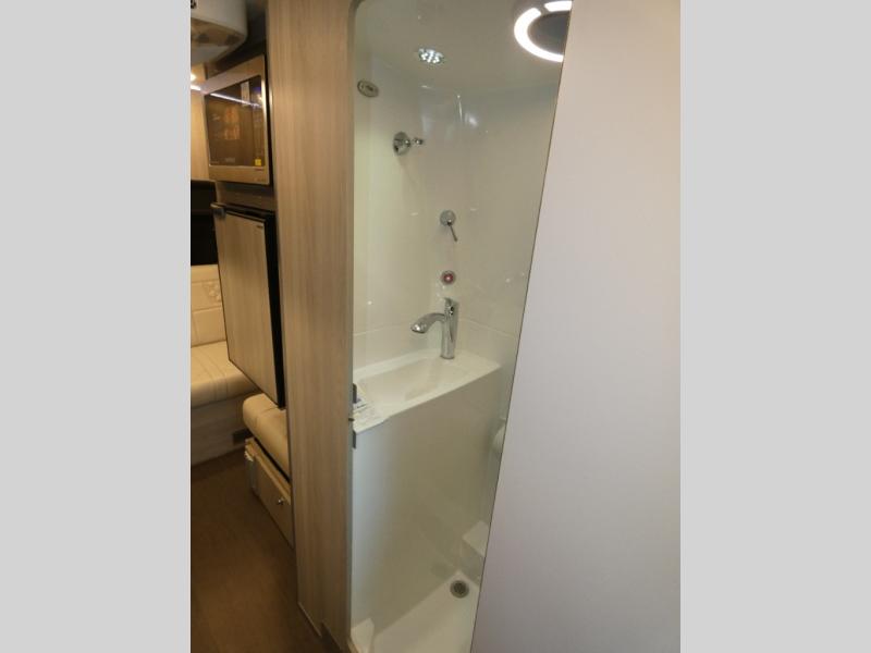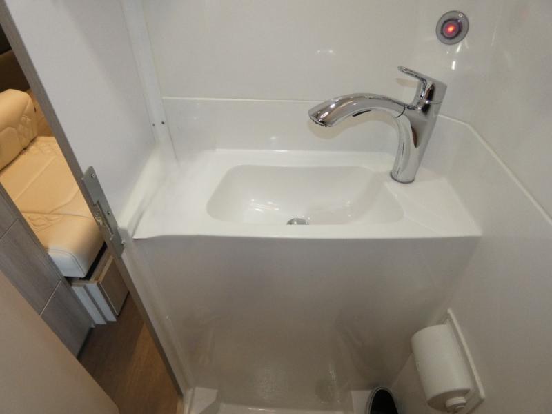 You will have everything you need for a fun getaway in this motorhome! The rear 69" electric sofa bed provides a comfortable place to lay your head at night, and the two electric ottomans add extra comfort when you are relaxing while watching your favorite movie on the 24" swivel TV. You can prepare your best home cooked meals with the true induction single burner cooktop, flip-up countertop extension, and microwave above the refrigerator. There is also a tip-out above two large drawers, and on the outside you have an extendable table and drawer. The wet bath has a molded fiberglass shower with integrated sink and flush toilet to freshen up in each morning. Behind the captain's chair is a lagun table for your convenience!