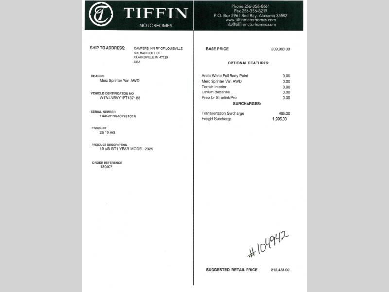 | Chassis | 2500 Mercedes-Benz Sprinter AWD |