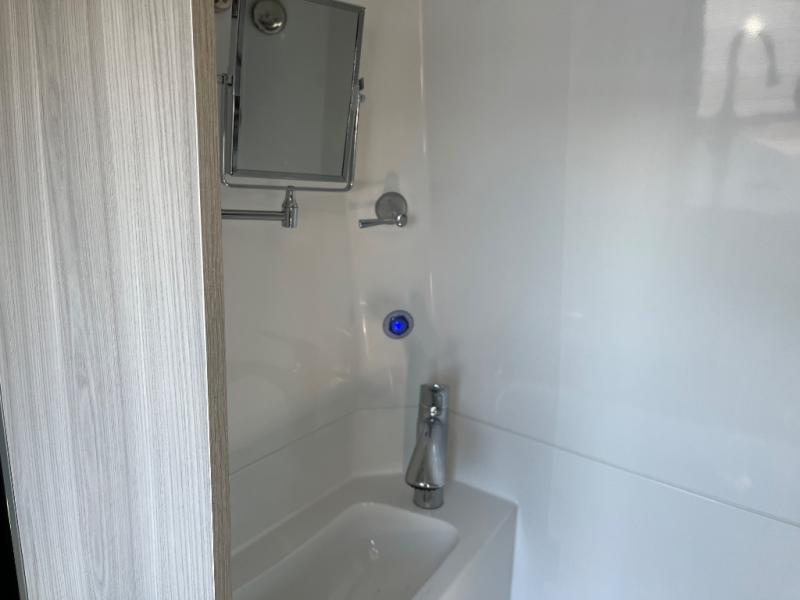 You will have everything you need for a fun getaway in this motorhome! The rear 69" electric sofa bed provides a comfortable place to lay your head at night, and the two electric ottomans add extra comfort when you are relaxing while watching your favorite movie on the 24" swivel TV. You can prepare your best home cooked meals with the true induction single burner cooktop, flip-up countertop extension, and microwave above the refrigerator. There is also a tip-out above two large drawers, and on the outside you have an extendable table and drawer. The wet bath has a molded fiberglass shower with integrated sink and flush toilet to freshen up in each morning. Behind the captain's chair is a lagun table for your convenience!
