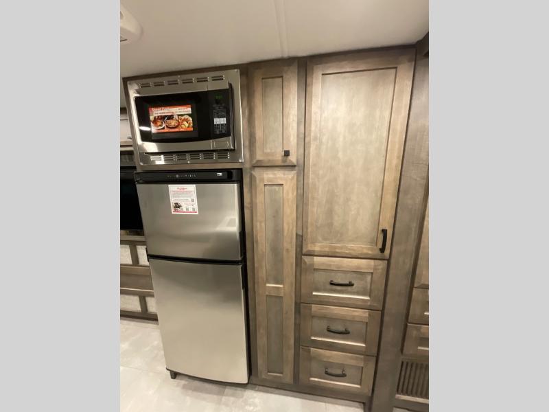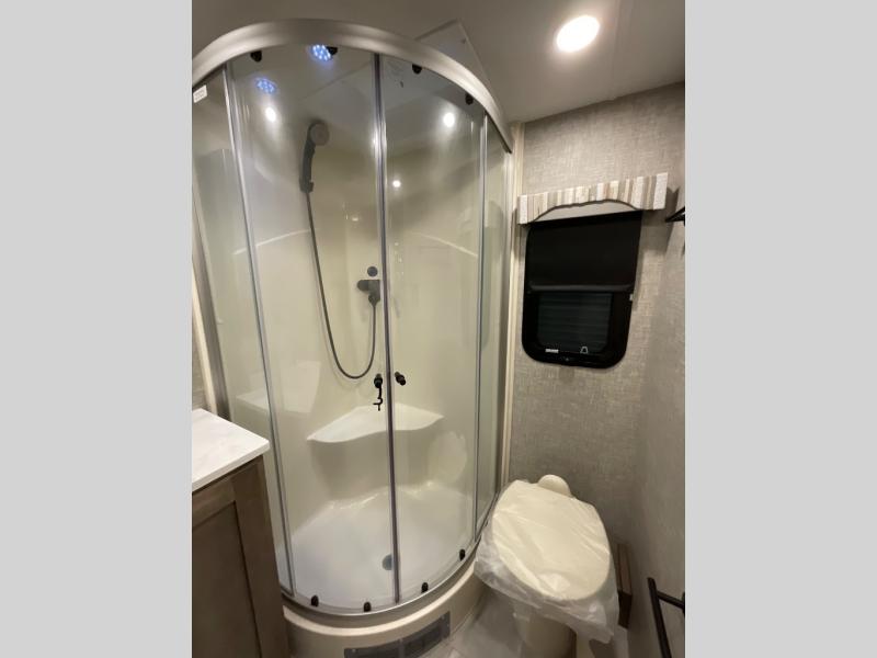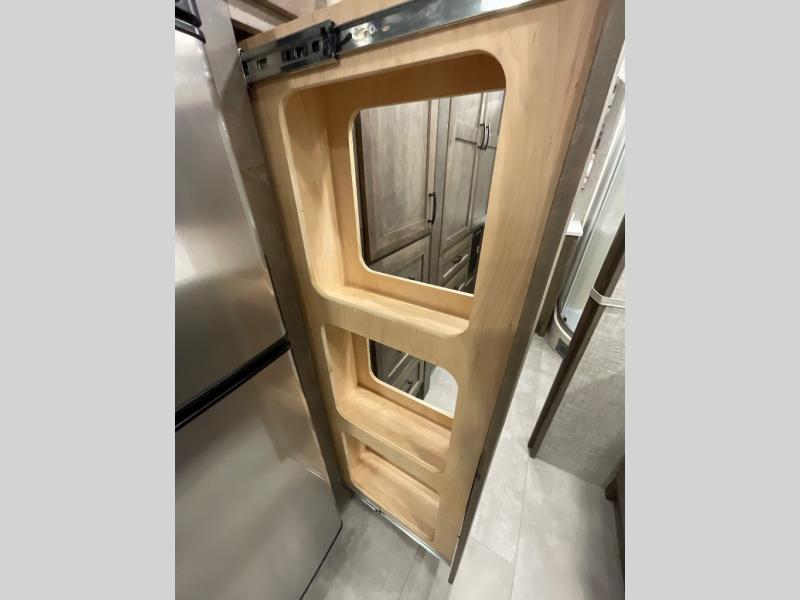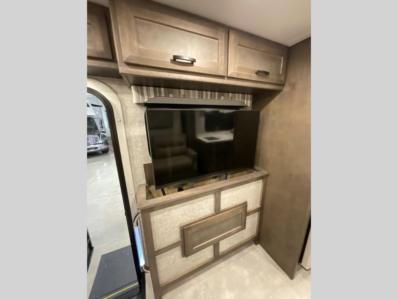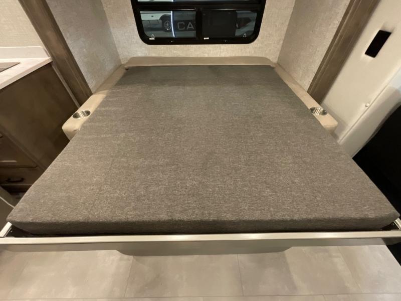 Comfort is found throughout in this spacious coach. There is a comfortable queen-sized Murphy bed to sleep on at night and a sofa to relax on during the day. You can prepare breakfast on the induction cooktop or use the stainless steel convection microwave, and leftovers can go in the 8 cu. ft. refrigerator. This model includes a full bath with a solid surface lavatory top, a roof vent fan, and a radius shower, and you'll find plenty of storage space between the two storage closets and the wardrobe! When you're ready to head to the next campground, you will enjoy the adjustable captain's seats and colored multi-function touch screen AM/FM stereo with SYNC 3, Bluetooth, navigation, and dual USB ports for the ultimate driving experience!