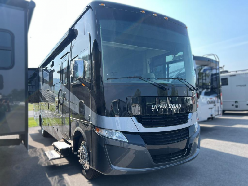 Every one of these Tiffin Motorhomes Open Road Allegro Class A gas motorhomes are ready to go when ever you are! A Ford 7.3L V8 engine powers these units and a durable, yet lightweight, tubular aluminum wall skeleton holds them together. They are beautifully designed with handcrafted cabinetry, Ultrafabrics, and a panoramic kitchen galley window for breathtaking views. A couple electronic features you will appreciate include an exterior TV with a soundbar and a Spyder multiplex system, plus there are two 13.5k BUT AC units to keep you cool on those hot summer days. The color back-up camera and side-view cameras will make parking easier than ever, and you'll appreciate hydraulic leveling jacks with a control panel for hassle-free set up. New features include an exterior ladder now standard, new Generation 11 paint schemes, optional Starlink prep, and more!