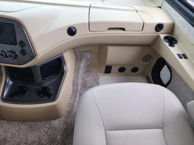 Power-adjustable cockpit seats that swivel to become part of the living space.
