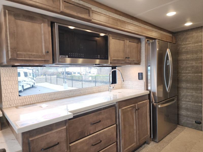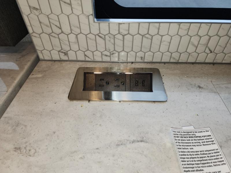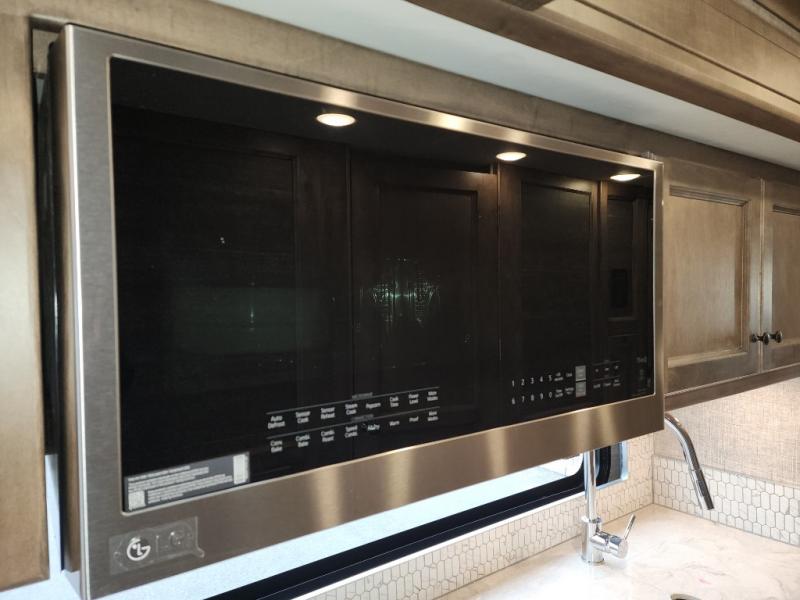 Three-burner cooktop and convection microwave to prepare home-cooked meals on the road.