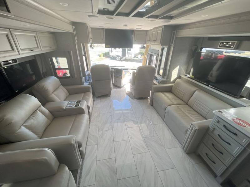 Each one of these Tiffin Motorhomes Phaeton Class A diesel motorhomes offer high-end elegance at every turn! A PowerGlide XC raised rail rear engine diesel chassis will give you a smooth ride for every mile, and each coach comes with a Cummins L9 450 HP engine to power your journeys. There is a 10.0 kW Onan Quiet Diesel generator, three 15k BTU A/C units, and a Firefly integrations Eclipse module to keep you connected wherever you go. Outside, you'll appreciate the custom rock guard to protect your unit, along with full-body paint with four layers of clear coat and high-performance protection film on the front cap and select areas. A Girard power awning with LED lights also comes standard plus a fiberglass reinforced plastic basement floor, an exterior TV, and more. A few new features you are sure to enjoy are the standard exterior ladder, matte finish tile floor option, new Generation 12 paint schemes, Starlink roof prep, and more!