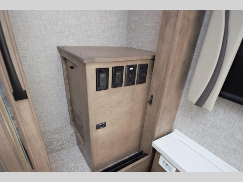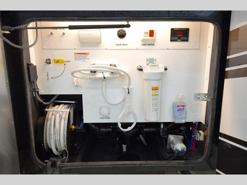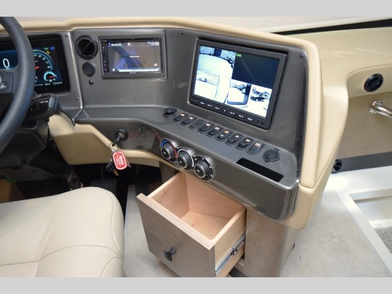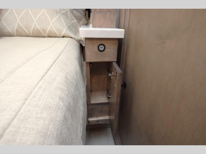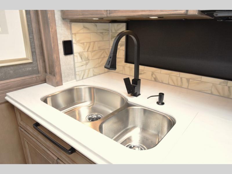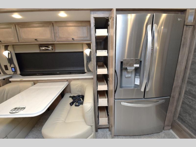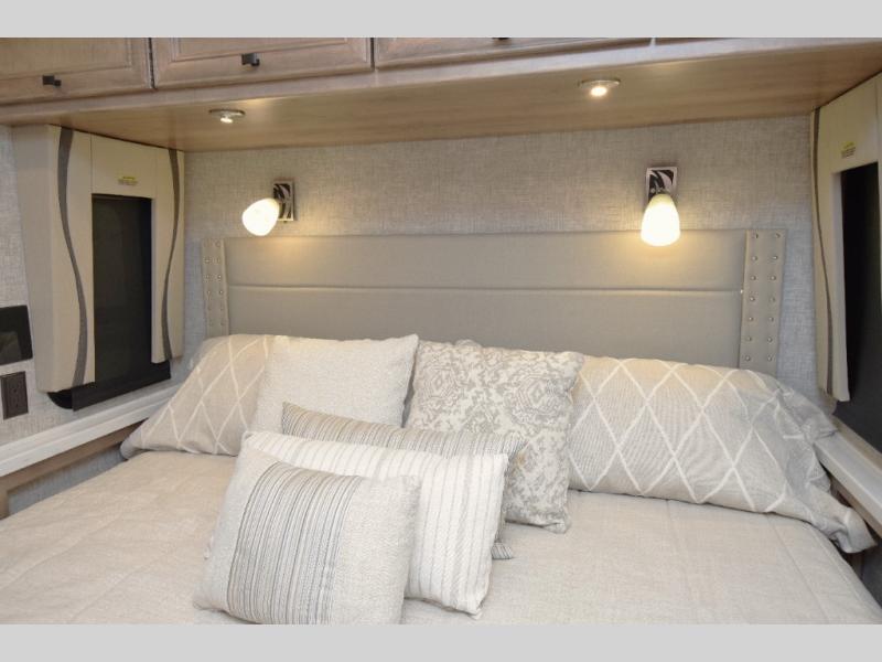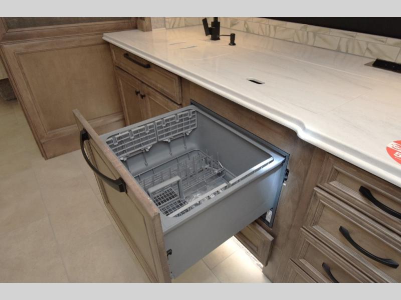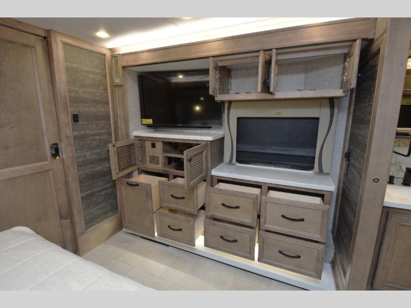 The chef’s kitchen features everything you need to create culinary masterpieces. The countertop extension and cooktop with convection microwave make cooking easy, while the option for an outdoor grill means you can take your cooking outside for BBQs and picnics. And when it’s time to unwind, catch the big game or your favorite show on the exterior TV with a sound bar!