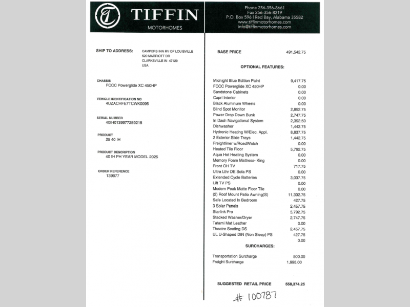 Exterior Features for Durability and Style: The Tiffin Phaeton stands out with its custom rock guard, full-body paint with four layers of clear coat, and high-performance protection film on the front cap and select areas. The Girard power awning with LED lights adds a touch of elegance to your outdoor space, while the fiberglass reinforced plastic basement floor ensures durability. New features include an exterior ladder, matte finish tile floor option, new Generation 12 paint schemes, and Starlink roof prep for cutting-edge connectivity on the go!