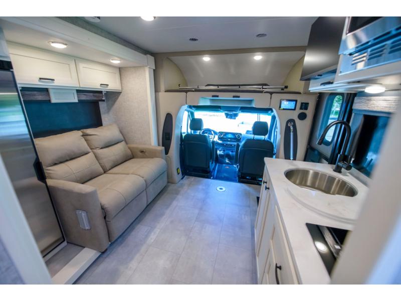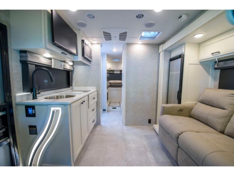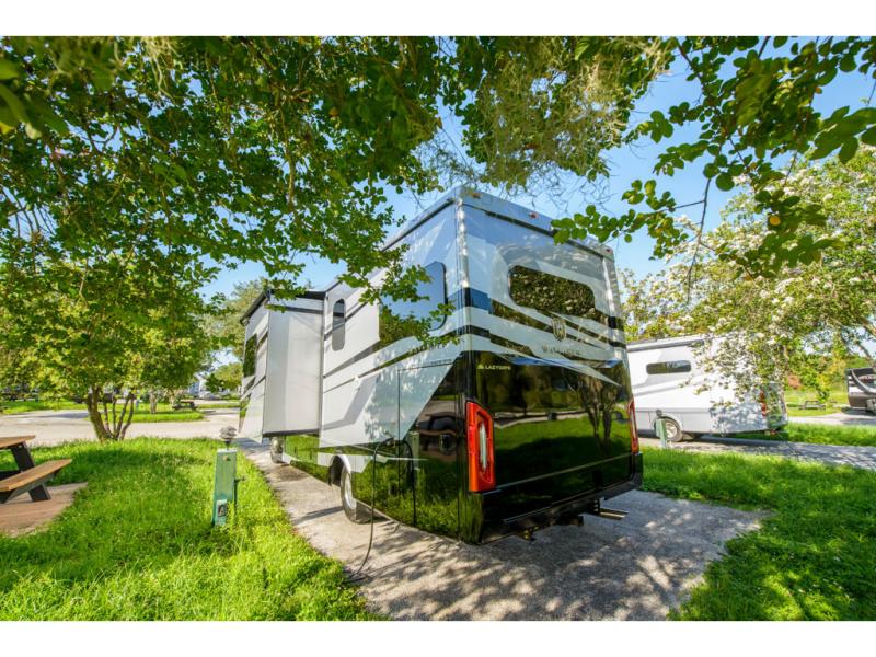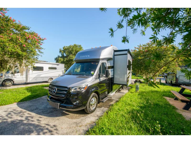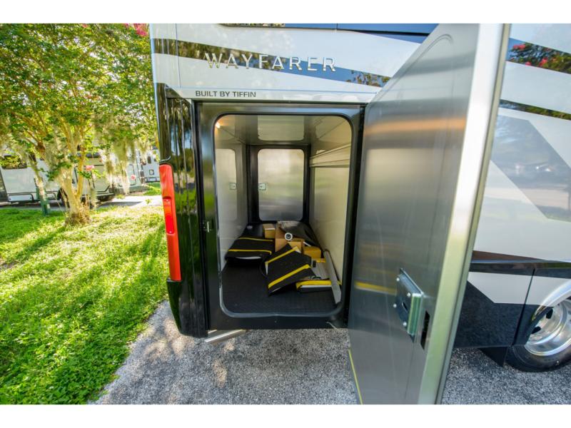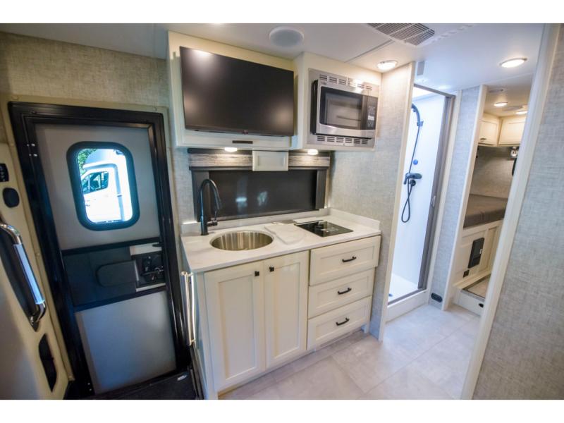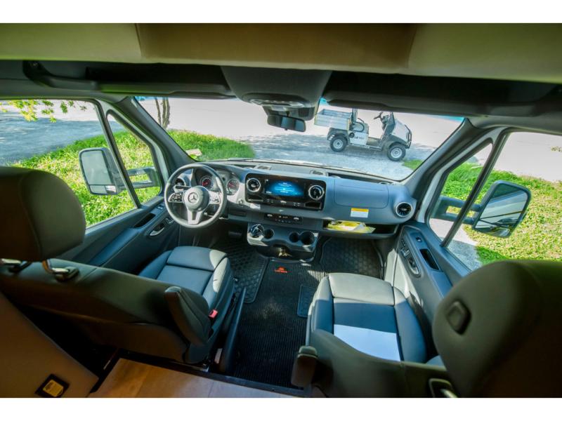 With any Wayfarer Class C diesel coach by Tiffin Motorhomes you will enjoy luxury features both inside and out. There are one-piece molded gel-coat fiberglass front and rear caps plus full-body paint and two layers of clear coat for added protection. The Mercedes-Benz 3500XD dual wheel cutaway chassis provides a strong foundation, and the 2.0L V4 turbo diesel high output 211 HP diesel engine with 332 lb-ft torque will keep you going adventure after adventure! You will love the drive just as much as the destination with black leather adjustable captain's seats that are also heated, intelligent navigation, and a Mercedes-Benz MBUX multimedia system with a 10.25" touchscreen. Wherever you decide to roam, you will be met with interior comforts that include handcrafted overhead cabinetry, solar and privacy shades, solid surface galley countertops and task lighting, and a wardrobe in the bedroom to keep your space tidy. New features include matte black cabinet hardware and bathroom accessories, a 9-speed shiftable automatic transmission, a standard 4,000 kW RVMP flex power LP generator, and more!