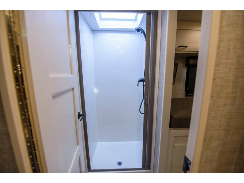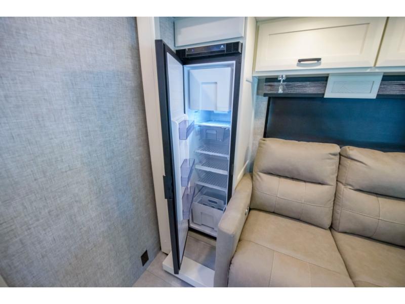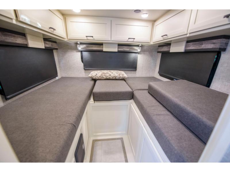 Head out to explore whenever the mood hits you! This coach provides a comfortable and luxurious way to travel from the cab features to the sleeping accommodations. The driver and passenger will have a tray for smartphones with charging ports, heated/electric adjustable mirrors, leather seats, and they might like to add the side-view cameras option. You can dine at the tri-fold sofa after whipping up a meal using the kitchen appliances including a convection microwave, and the countertop extension will surely come in handy. The split bathroom includes a shower along one side and a private toilet and sink on the opposite so two people can get ready at the same time. At night, fall quickly to sleep on the rear twin beds which allow you easy access to the bathroom, plus the nightstand will come in handy to place your cellphones and drinks. You will also find shelves for storage, and you might like to add an optional TV to watch. You might even like add a living room TV option and/or exterior TV option, the choice is yours.