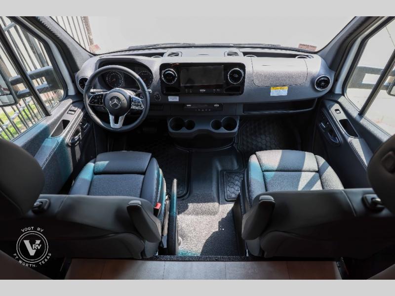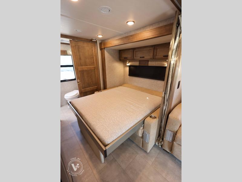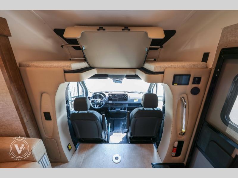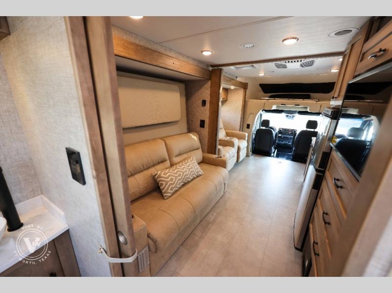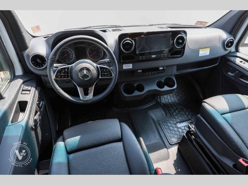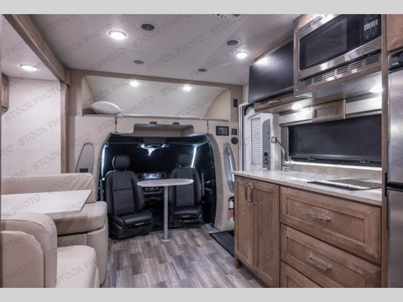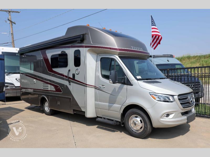 With any Wayfarer Class C diesel coach by Tiffin Motorhomes you will enjoy luxury features both inside and out. There are one-piece molded gel-coat fiberglass front and rear caps plus full-body paint and two layers of clear coat for added protection. The Mercedes-Benz 3500XD dual wheel cutaway chassis provides a strong foundation, and the 2.0L V4 turbo diesel high output 211 HP diesel engine with 332 lb-ft torque will keep you going adventure after adventure! You will love the drive just as much as the destination with black leather adjustable captain's seats that are also heated, intelligent navigation, and a Mercedes-Benz MBUX multimedia system with a 10.25" touchscreen. Wherever you decide to roam, you will be met with interior comforts that include handcrafted overhead cabinetry, solar and privacy shades, solid surface galley countertops and task lighting, and a wardrobe in the bedroom to keep your space tidy. New features include matte black cabinet hardware and bathroom accessories, a 9-speed shiftable automatic transmission, a standard 4,000 kW RVMP flex power LP generator, and more!