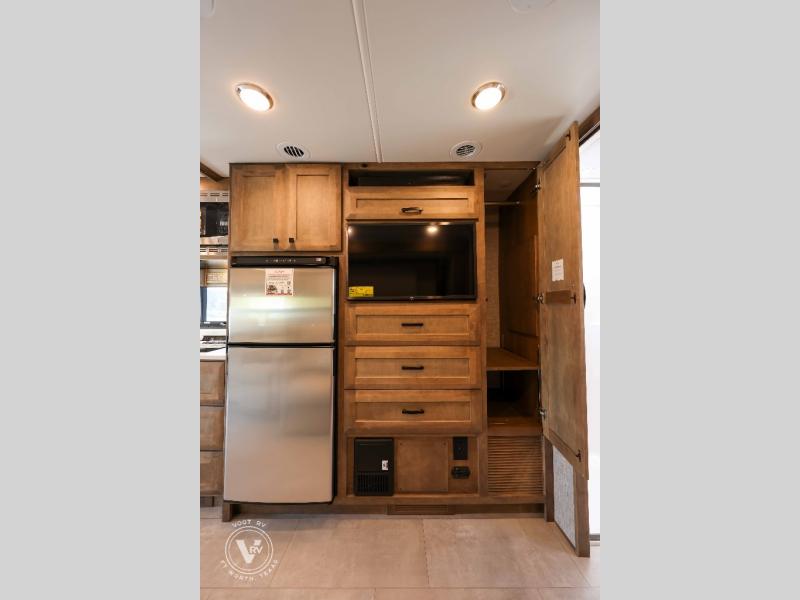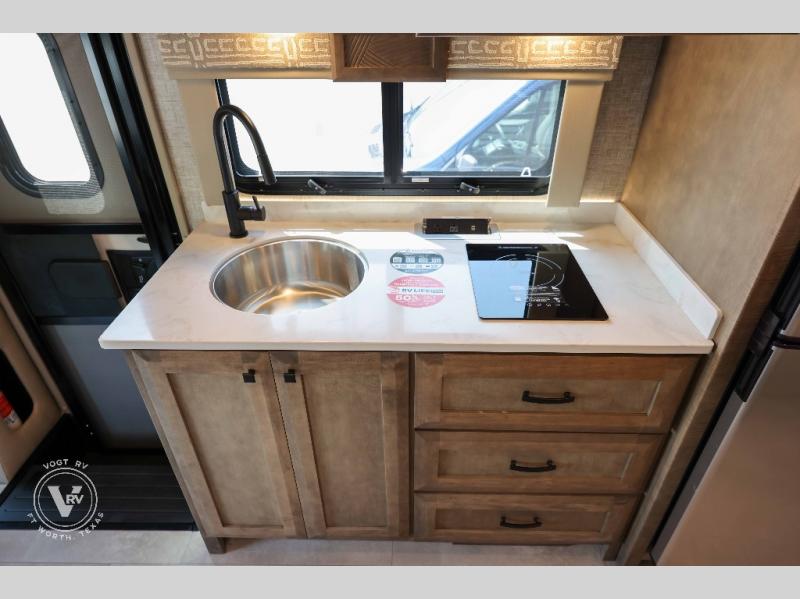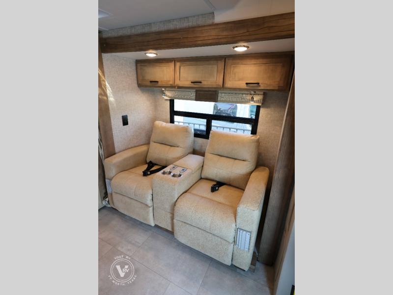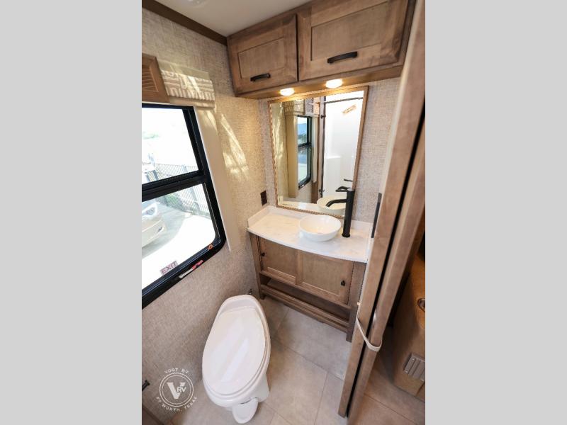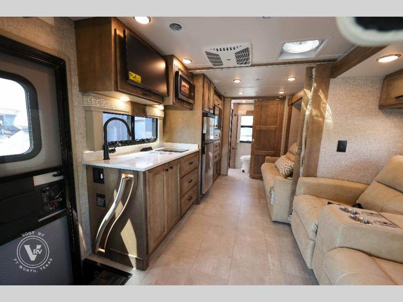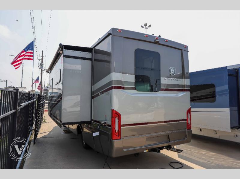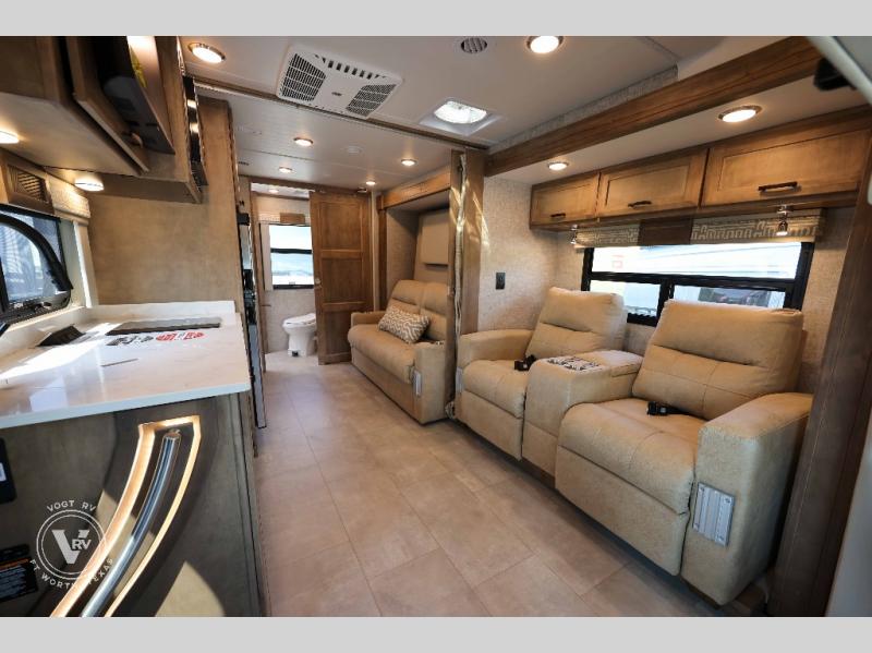With any Wayfarer Class C diesel coach by Tiffin Motorhomes you will enjoy luxury features both inside and out. There are one-piece molded gel-coat fiberglass front and rear caps plus full-body paint and two layers of clear coat for added protection. The Mercedes-Benz 3500XD dual wheel cutaway chassis provides a strong foundation, and the 2.0L V4 turbo diesel high output 211 HP diesel engine with 332 lb-ft torque will keep you going adventure after adventure! You will love the drive just as much as the destination with black leather adjustable captain's seats that are also heated, intelligent navigation, and a Mercedes-Benz MBUX multimedia system with a 10.25" touchscreen. Wherever you decide to roam, you will be met with interior comforts that include handcrafted overhead cabinetry, solar and privacy shades, solid surface galley countertops and task lighting, and a wardrobe in the bedroom to keep your space tidy. New features include matte black cabinet hardware and bathroom accessories, a 9-speed shiftable automatic transmission, a standard 4,000 kW RVMP flex power LP generator, and more!