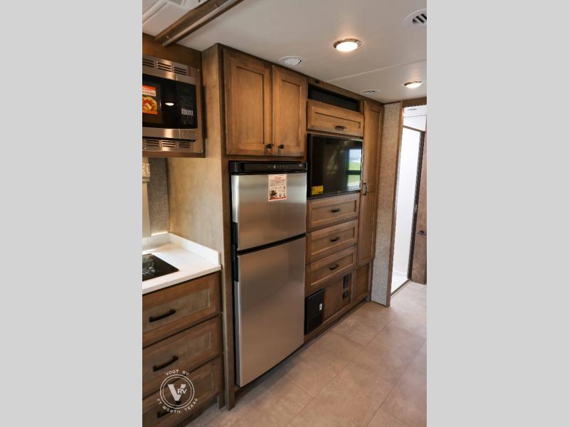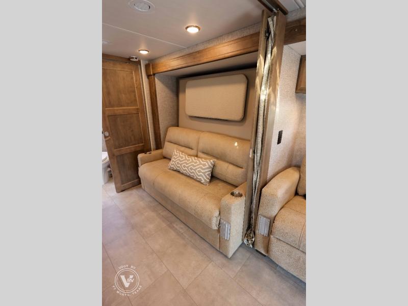 Travel with your favorite person, your family, or a some friends to see nature along the highways, up close and where ever the road takes you! You will find sleeping space for five with the bunk over the cab, the booth dinette, and the versatile queen Murphy bed and sofa combo! You can watch the 32" TV while the cook makes dinner using the convection microwave or cooktop, and the gas/electric 7 cu. ft. refrigerator can hold the cold items. The rear full bathroom gives you privacy and the sliding door saves space. You might like to add a few options to customize your coach such as optional theater seating, or a tri-fold sofa in place of the dinette, a central vacuum system, an overhead entertainment center in place of the bunk, and/or an exterior TV to enjoy under the awning.