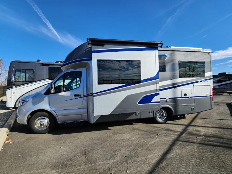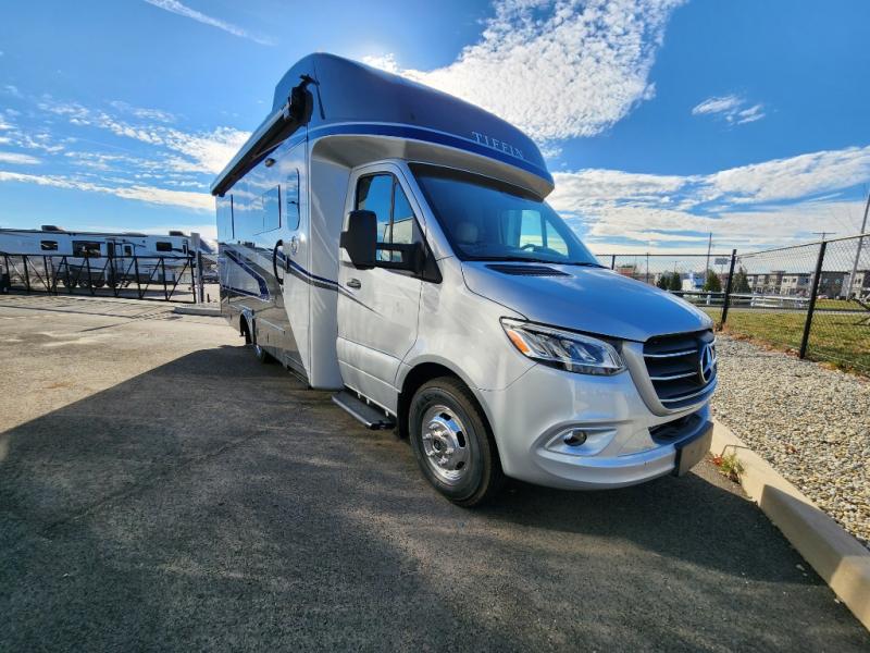 With any Wayfarer Class C diesel coach by Tiffin Motorhomes you will enjoy luxury features both inside and out. There are one-piece molded gel-coat fiberglass front and rear caps plus full-body paint and two layers of clear coat for added protection. The Mercedes-Benz 3500XD dual wheel cutaway chassis provides a strong foundation, and the 2.0L V4 turbo diesel high output 211 HP diesel engine with 332 lb-ft torque will keep you going adventure after adventure! You will love the drive just as much as the destination with black leather adjustable captain's seats that are also heated, intelligent navigation, and a Mercedes-Benz MBUX multimedia system with a 10.25" touchscreen. Wherever you decide to roam, you will be met with interior comforts that include handcrafted overhead cabinetry, solar and privacy shades, solid surface galley countertops and task lighting, and a wardrobe in the bedroom to keep your space tidy. New features include matte black cabinet hardware and bathroom accessories, a 9-speed shiftable automatic transmission, a standard 4,000 kW RVMP flex power LP generator, and more!