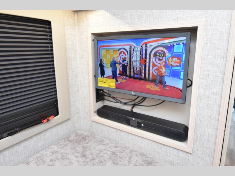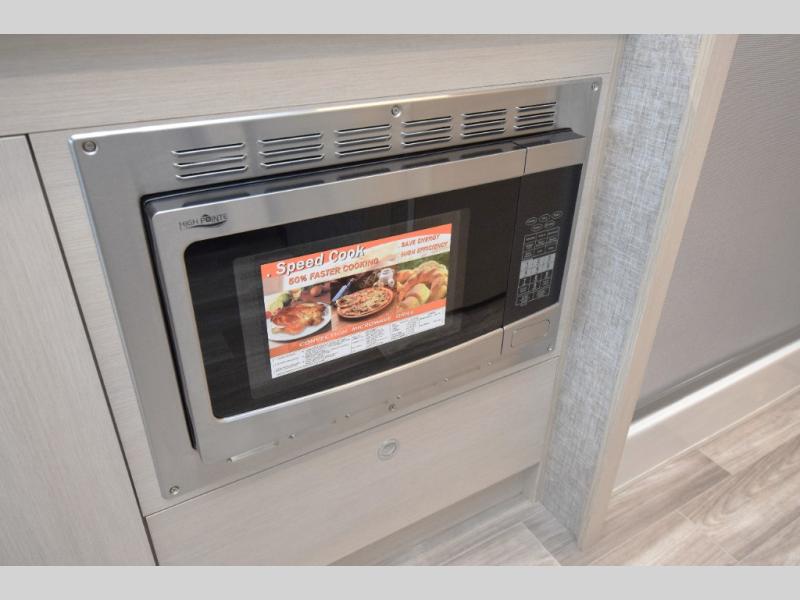Inside, the kitchen is fully equipped with a stainless steel convection microwave and solid surface countertops, making meal prep a breeze. The split bathroom design allows two people to freshen up at the same time with a shower on one side and a private toilet and sink on the other. At night, rest easy in the twin beds with convenient nightstands for your essentials.