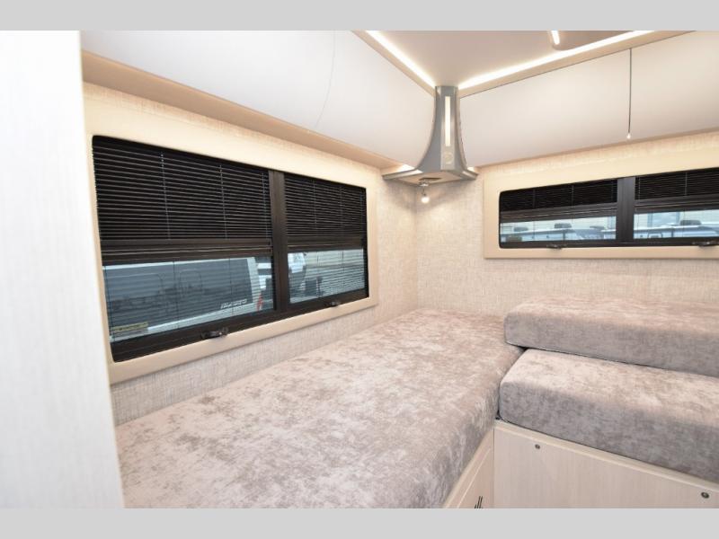 Step outside in style with the one-piece molded fiberglass caps and sleek full-body paint for enhanced durability. Powered by the Mercedes-Benz 3500XD dual-wheel chassis and a 2.0L V4 turbo diesel engine, this coach ensures smooth and efficient travel wherever you go.