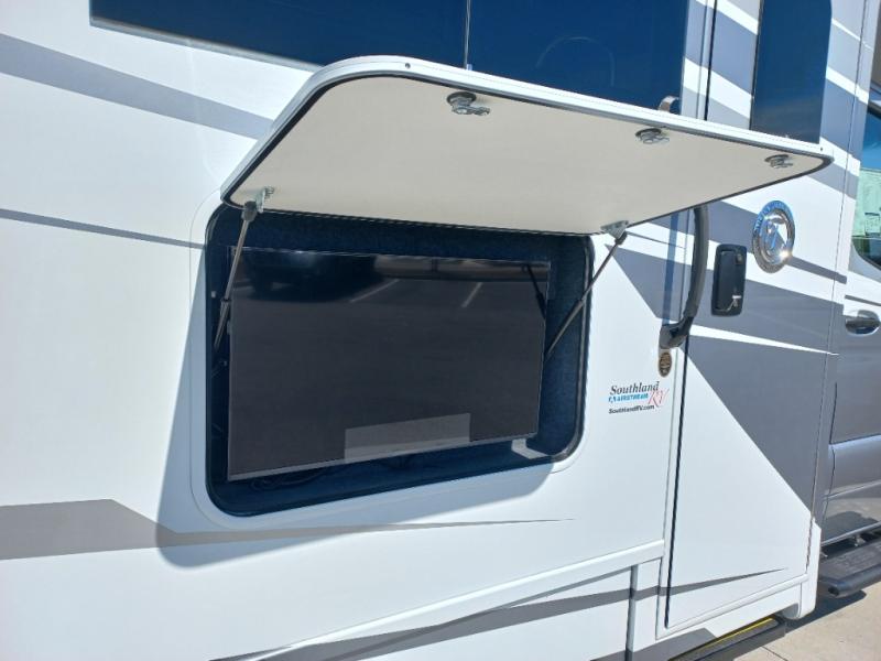 Head out to explore whenever the mood hits you! This coach provides a comfortable and luxurious way to travel from the cab features to the sleeping accommodations. The driver and passenger will have a tray for smartphones with charging ports, heated/electric adjustable mirrors, heated seats, and they might like to add the side-view cameras option. You can dine at the tri-fold sofa after whipping up a meal using the kitchen appliances including a stainless steel convection microwave. The split bathroom includes a shower along one side and a private toilet and sink on the opposite so two people can get ready at the same time. At night, fall quickly to sleep on the rear twin beds which allow you easy access to the bathroom, plus the nightstand will come in handy to place your cellphones and drinks. You will also find overhead cabinets for storage, and you might like to add an optional TV to watch.